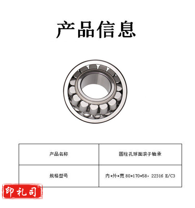 内*外*宽80*170*58 22316 E/C3 圆柱孔球面滚子轴承