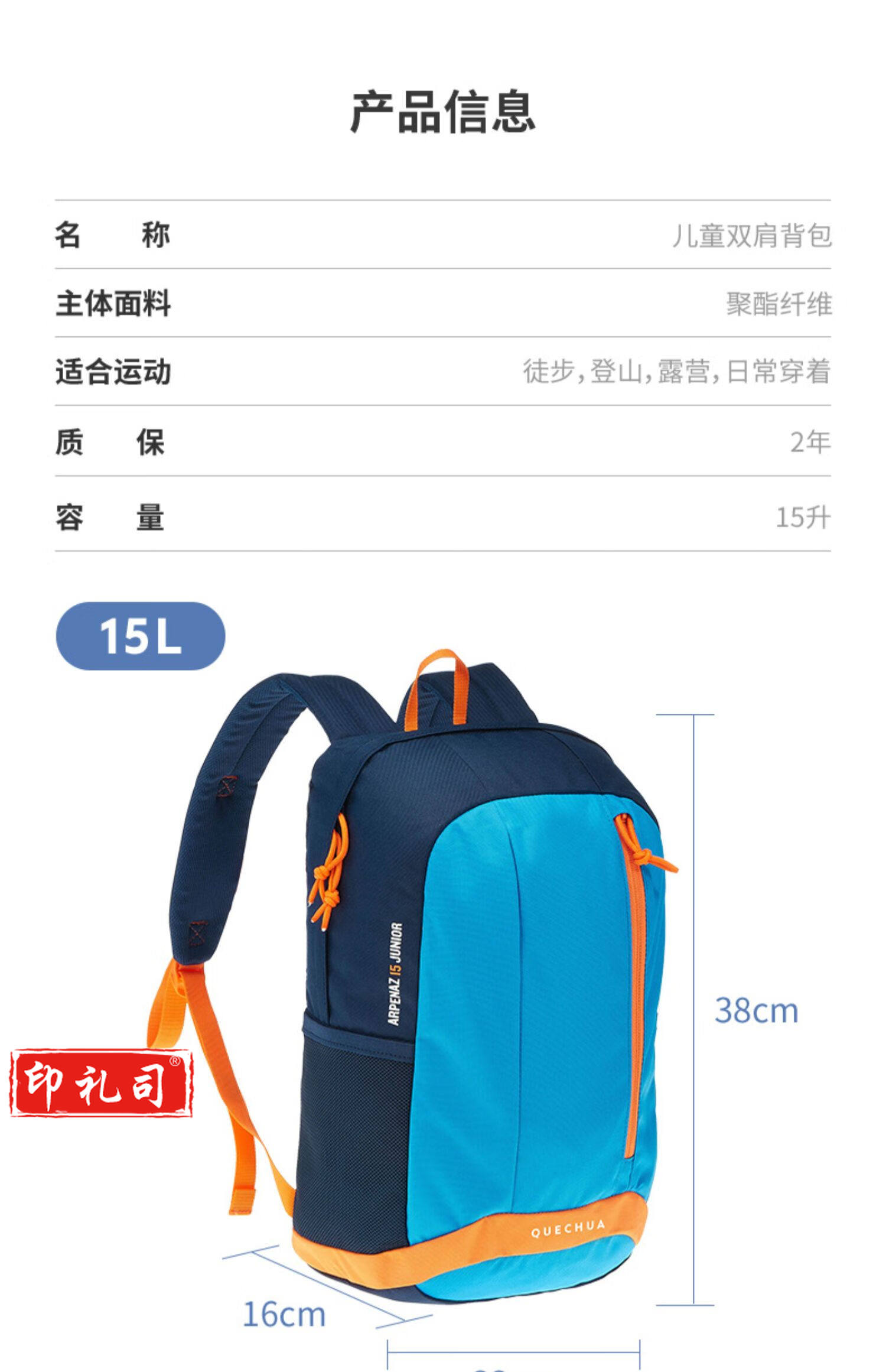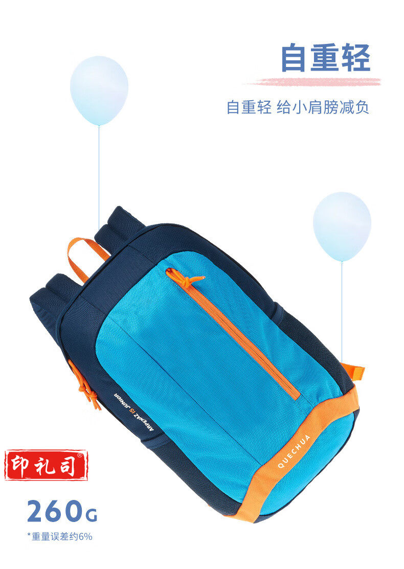 迪卡侬运动背包轻便登山包学生书包经典蓝15升成人儿童通用款4536966