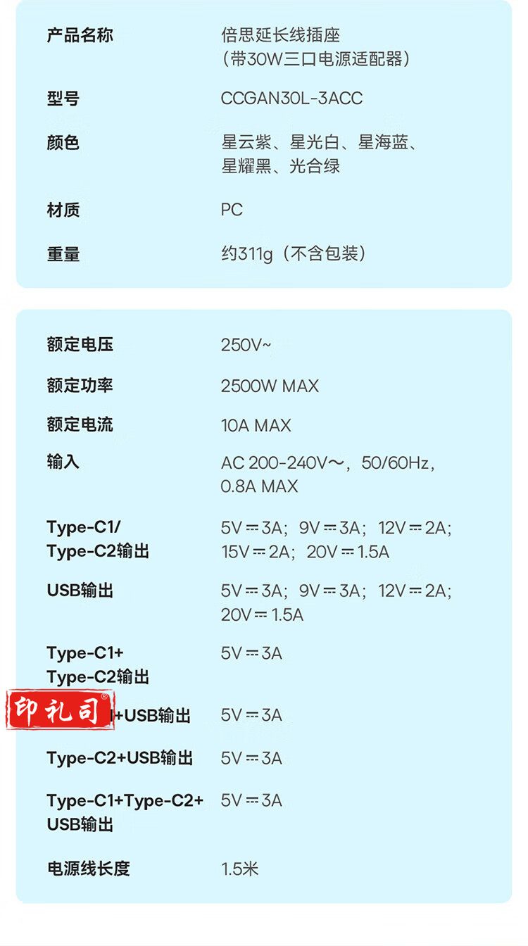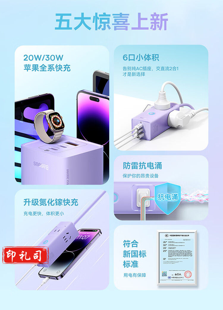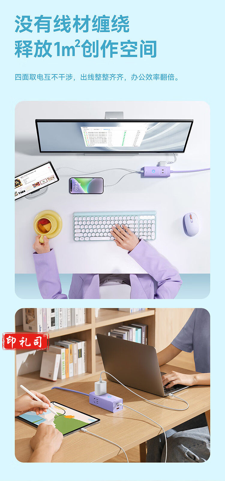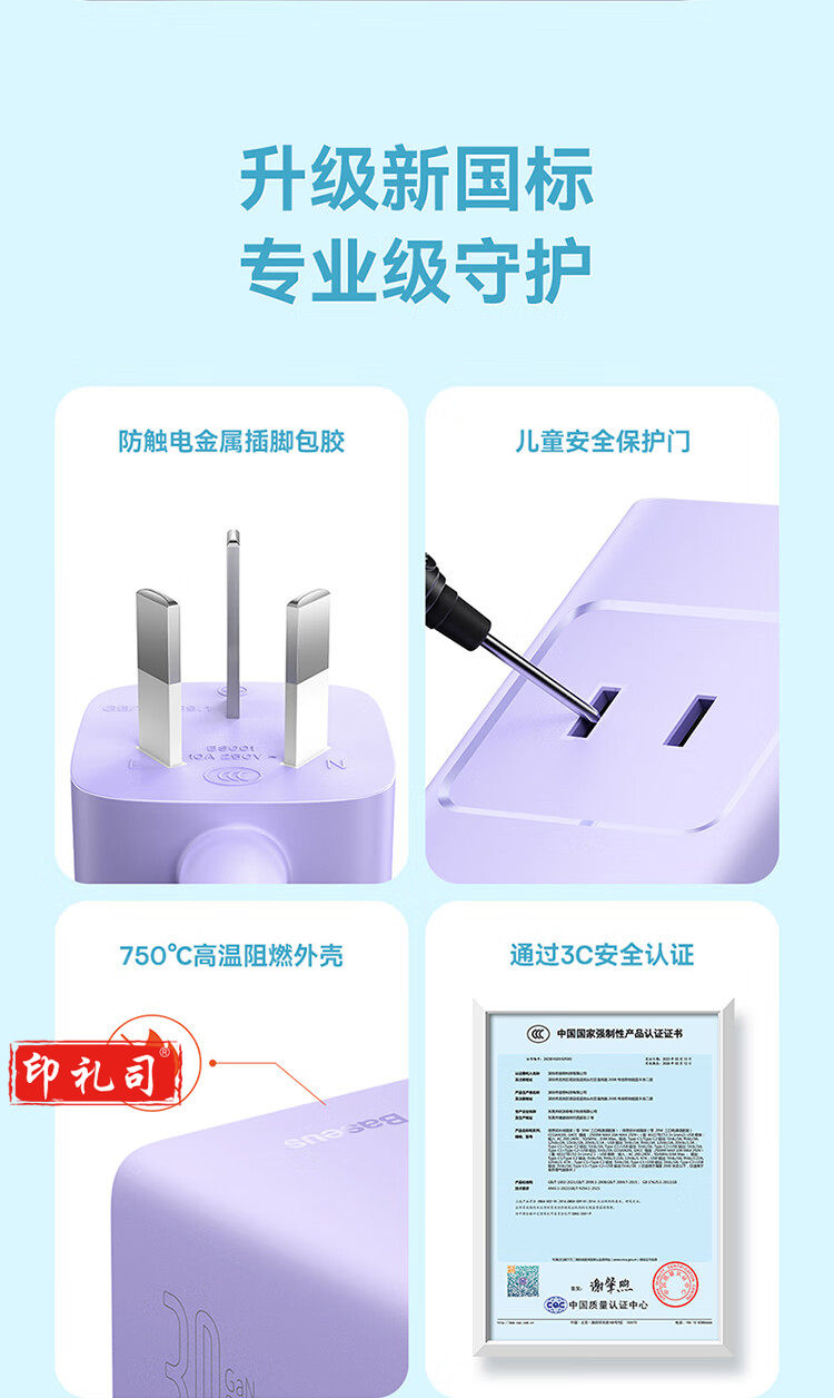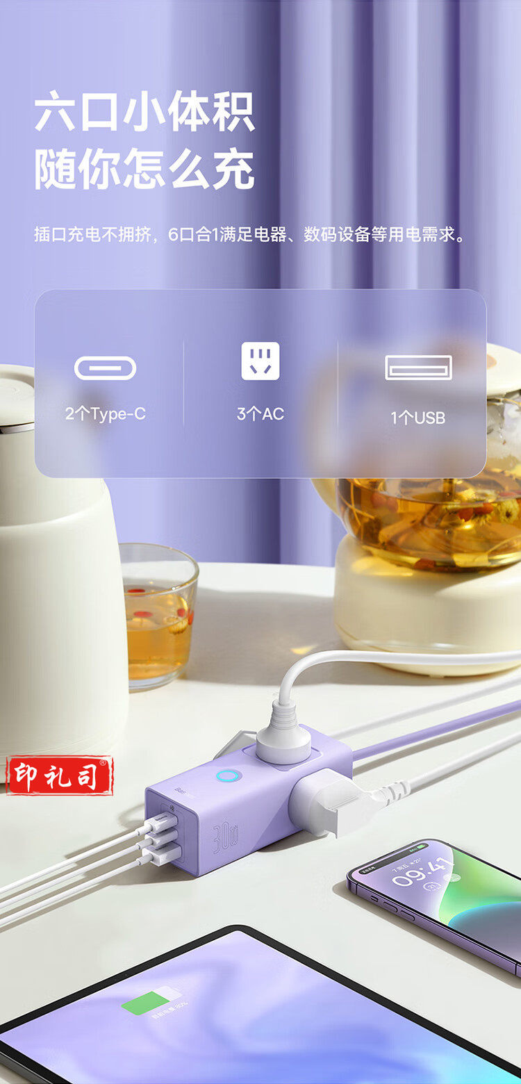 倍思 氮化镓30W充电器快充插排/插线板/插座/接线板/拖线板/多功能带线便携桌面充电站