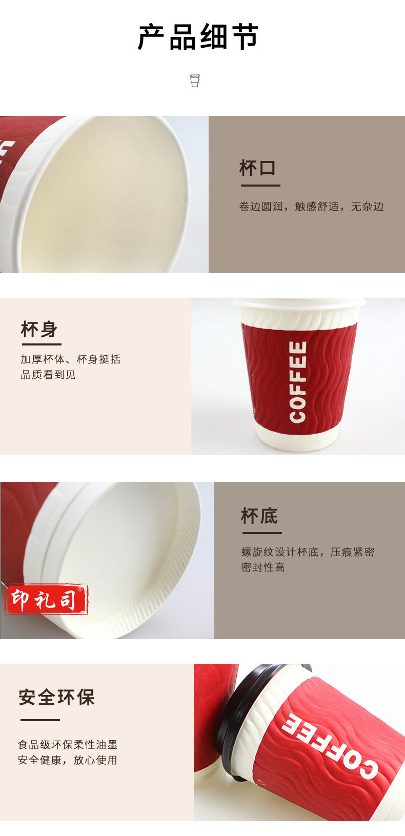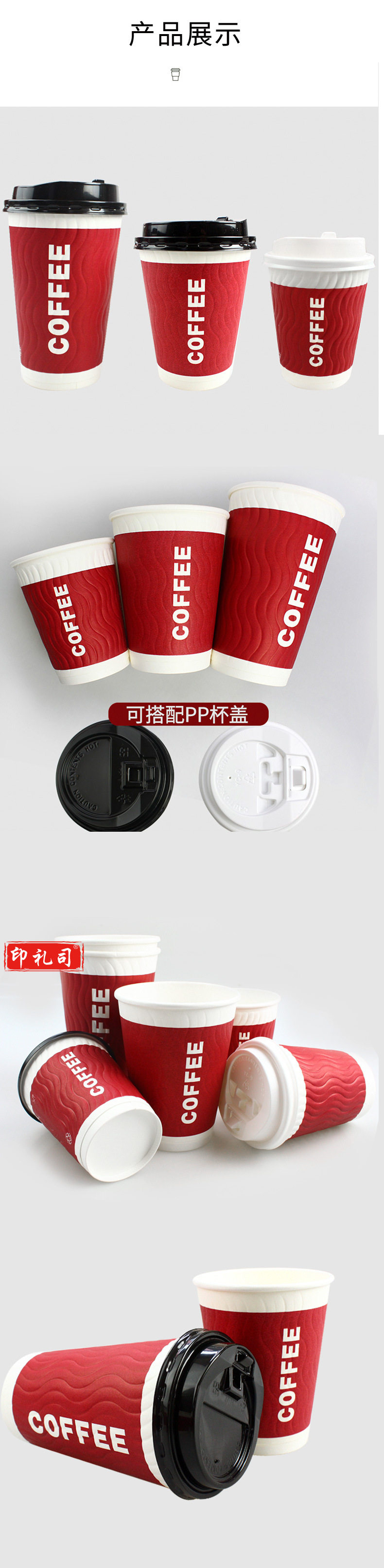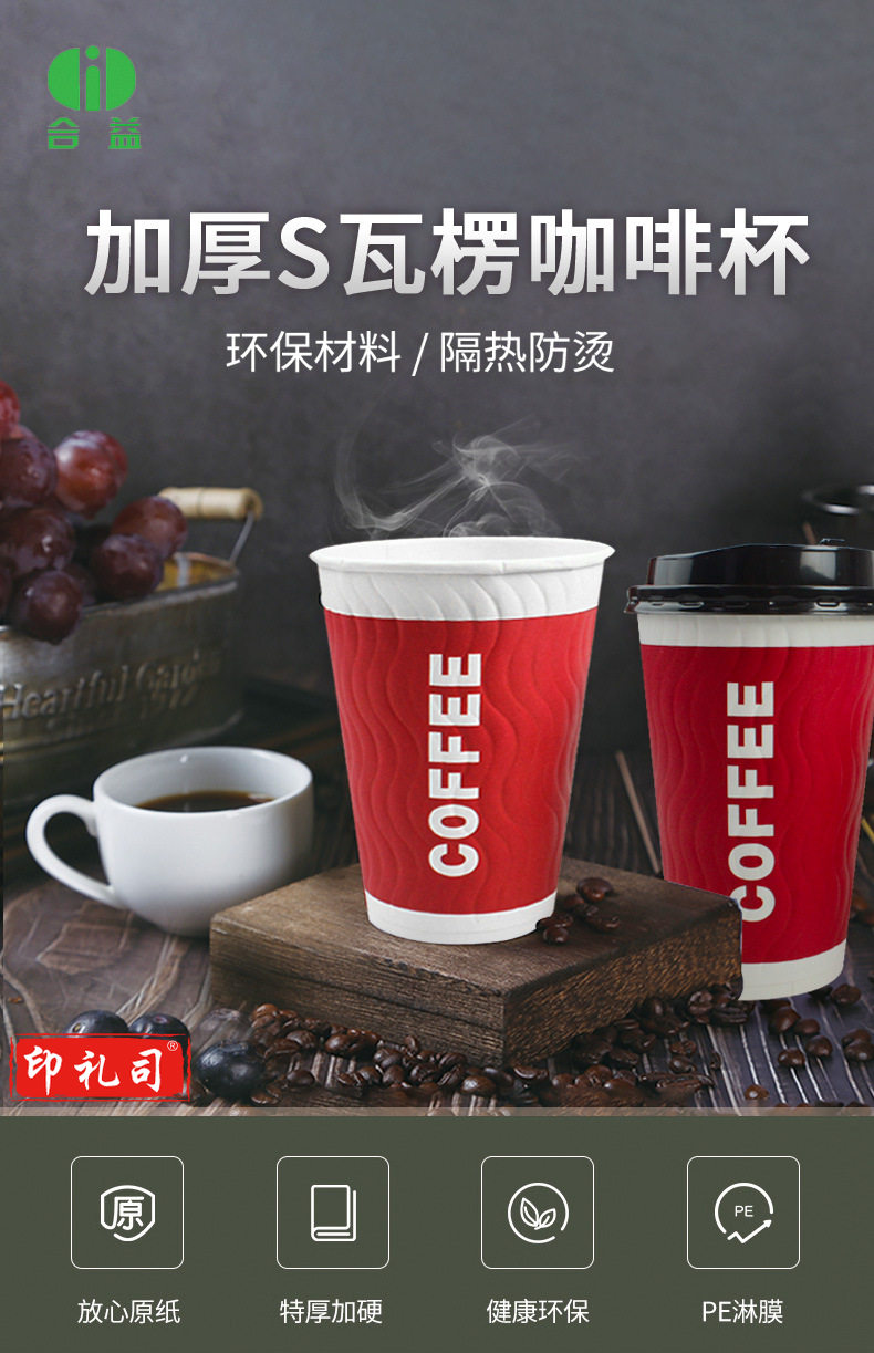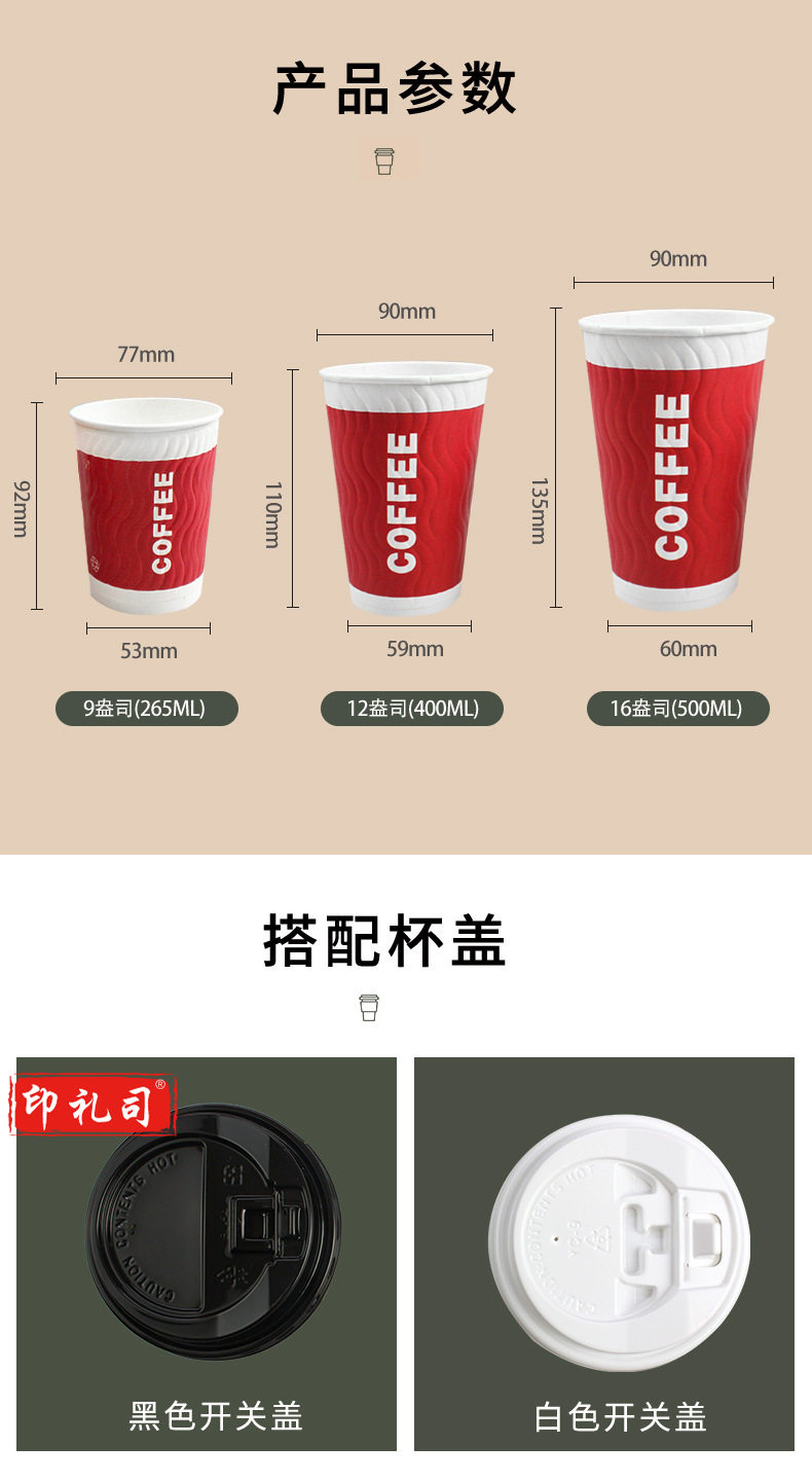 一次性咖啡隔热纸杯中号带盖热饮双层中空豆浆杯子(100个/包)