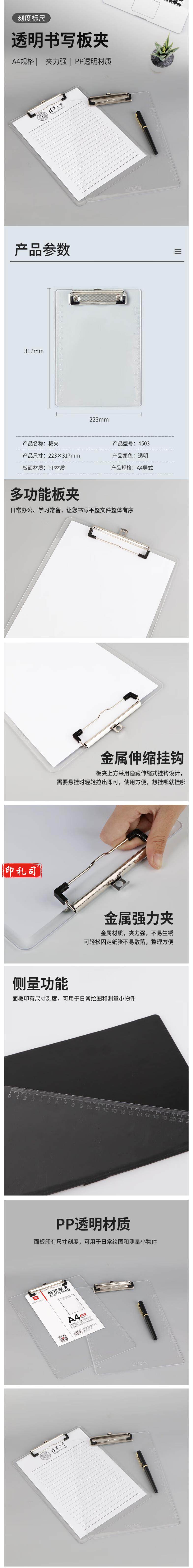 透明垫板 板夹 带刻度写字文件夹 写字板 书写板夹垫板 带刻度点菜夹板