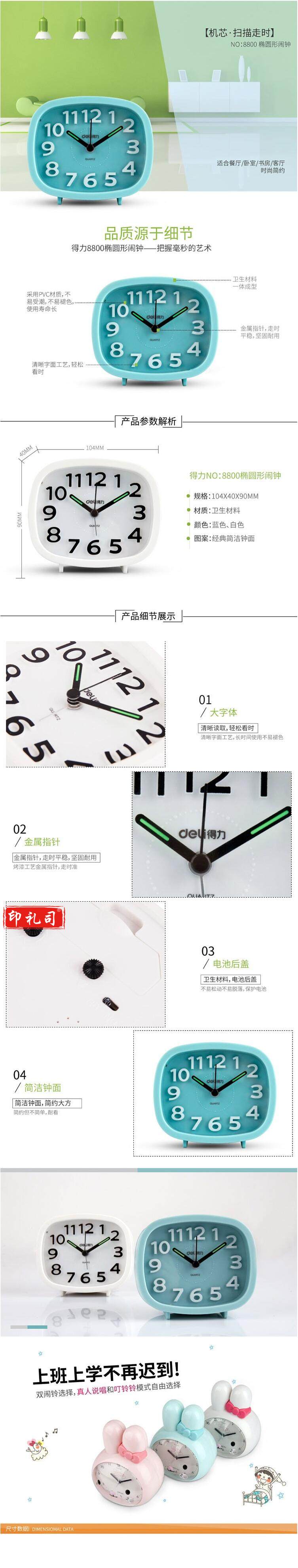 得力(deli) 8800 孔雀蓝 闹钟床头闹钟创意椭圆系列懒人闹钟