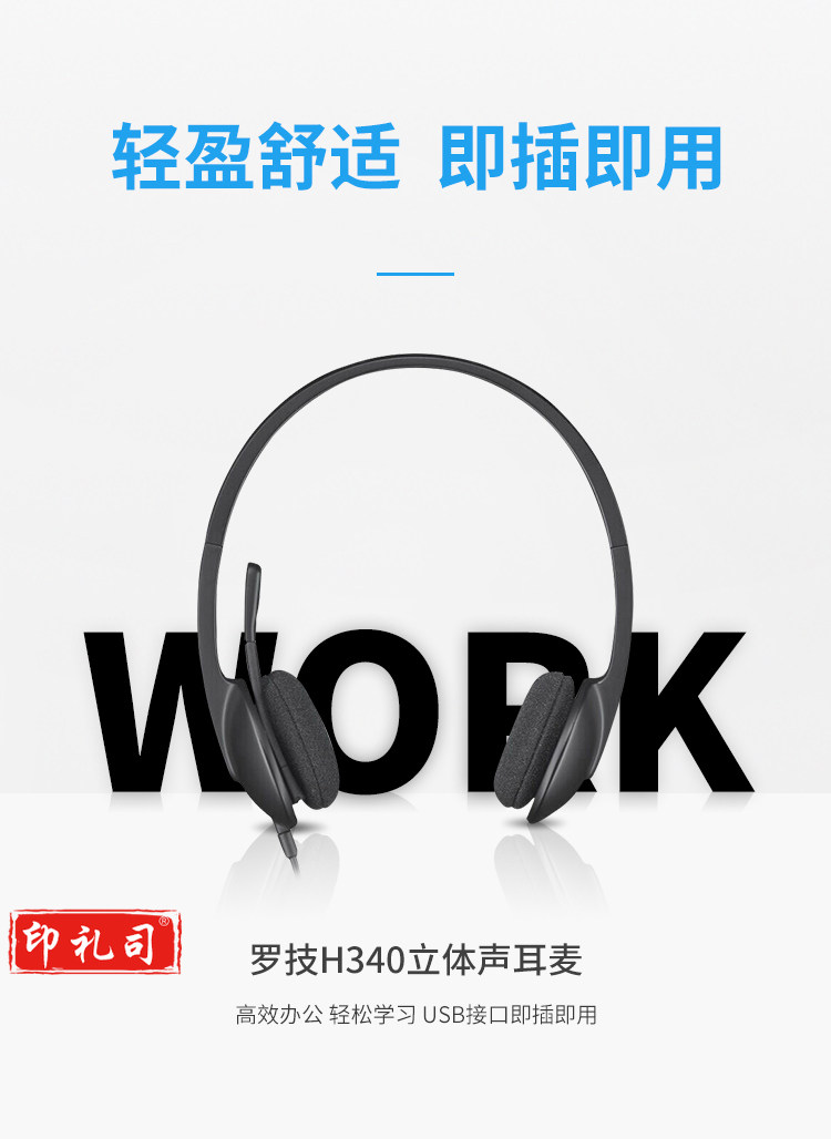 罗技(Logitech)H340 立体声USB耳机耳麦 黑色