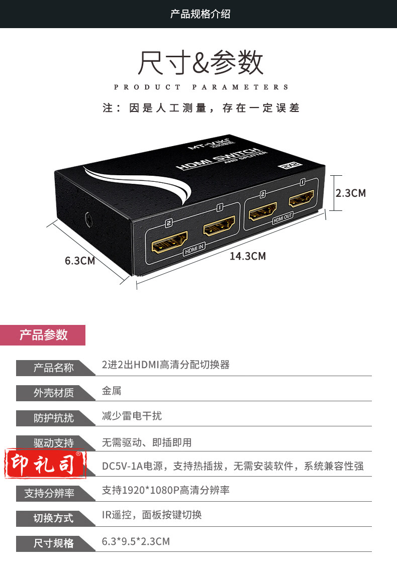 迈拓维矩 MT-HD2-2 HDMI切换分配器2进2出