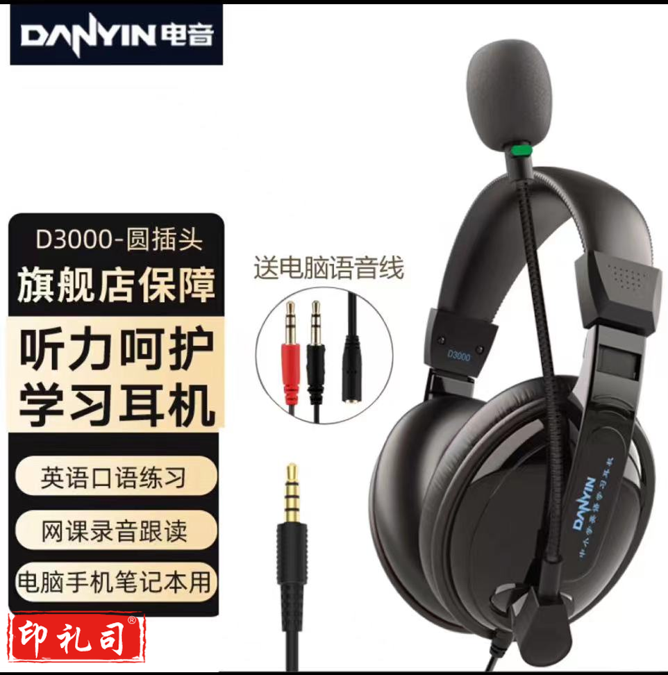 电音 D3000 USB 学生网课耳麦带话筒头戴式电脑耳机 教育耳机 中考高考听力听说口语训练专用耳麦