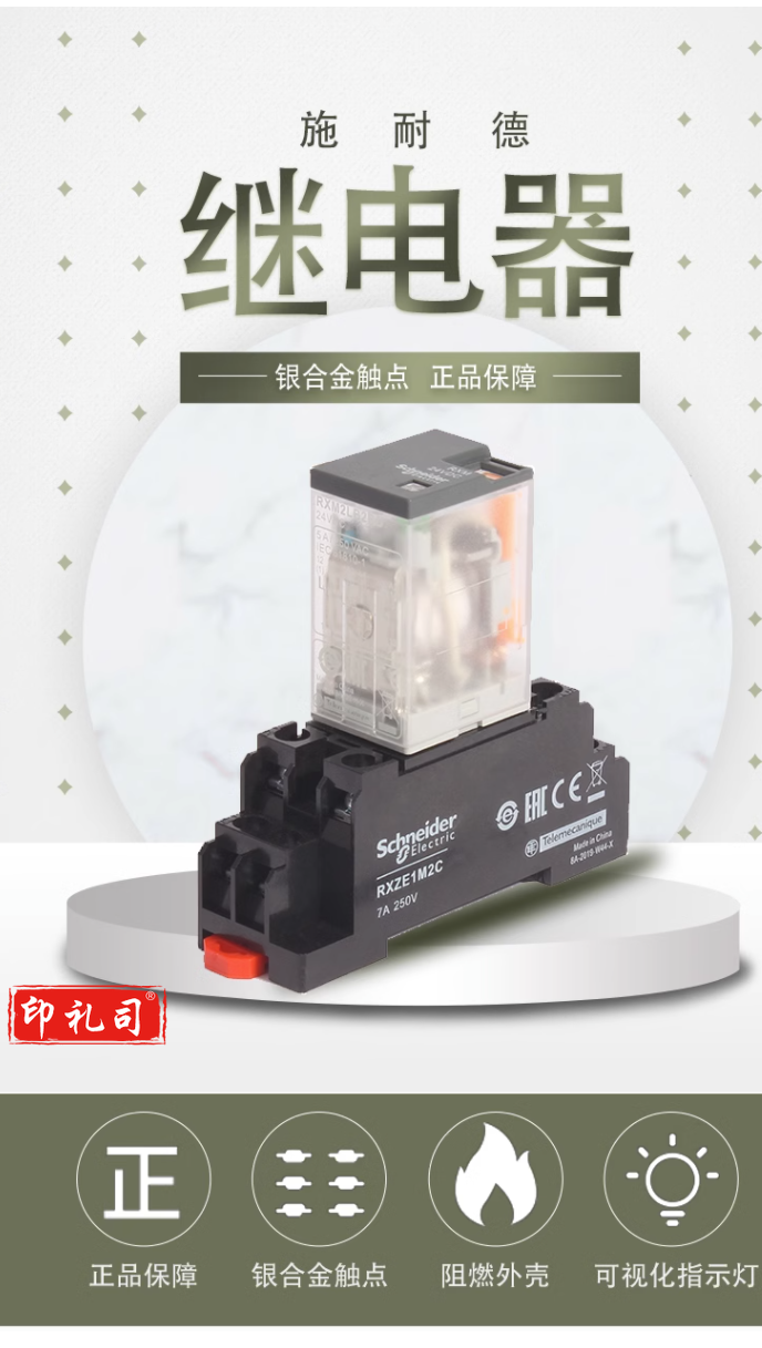 施耐德继电器RXM2LB2BD DC24V 8脚 带底座