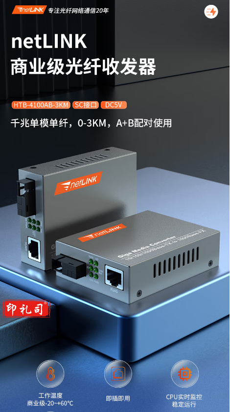 netLINK HTB-4100AB-3KM 光纤收发器 千兆单模单纤光电转换器 0-3公里 DC5V 一对JDXC02080720176158