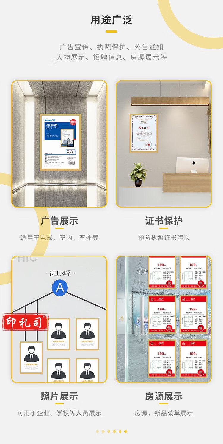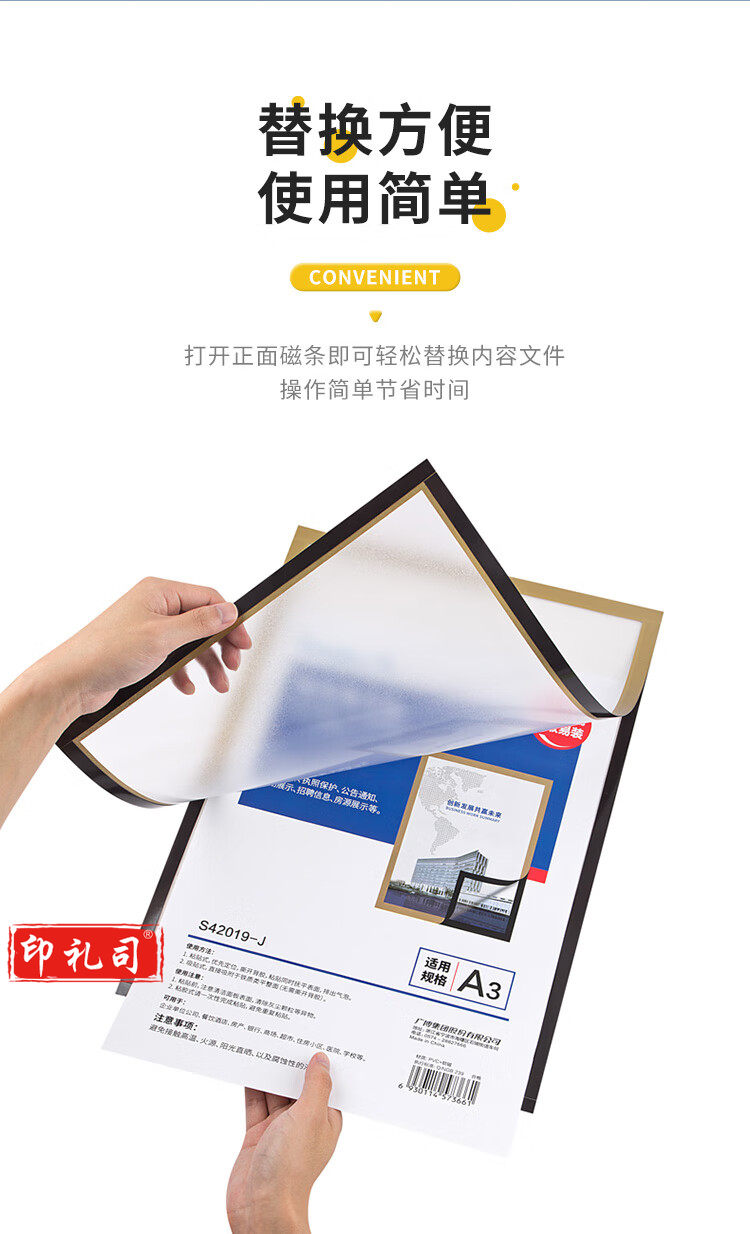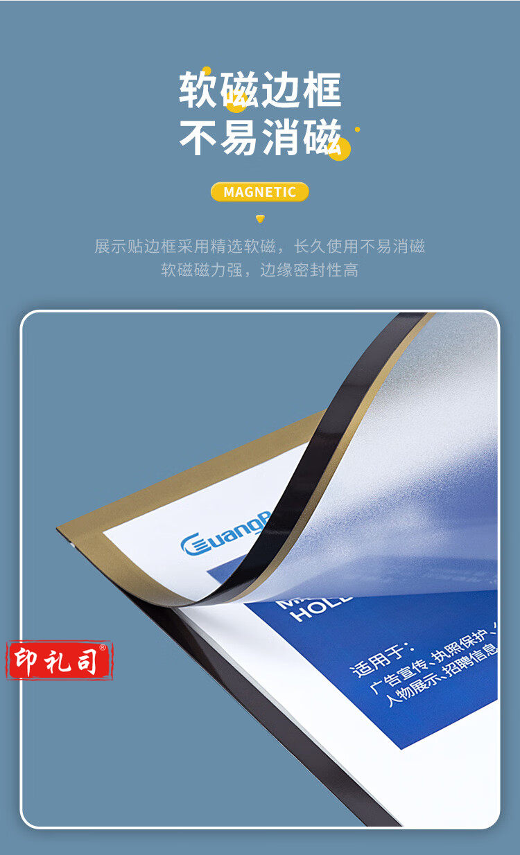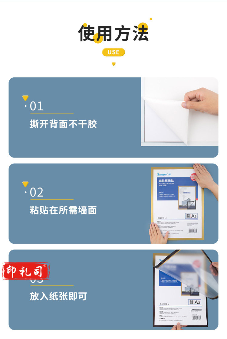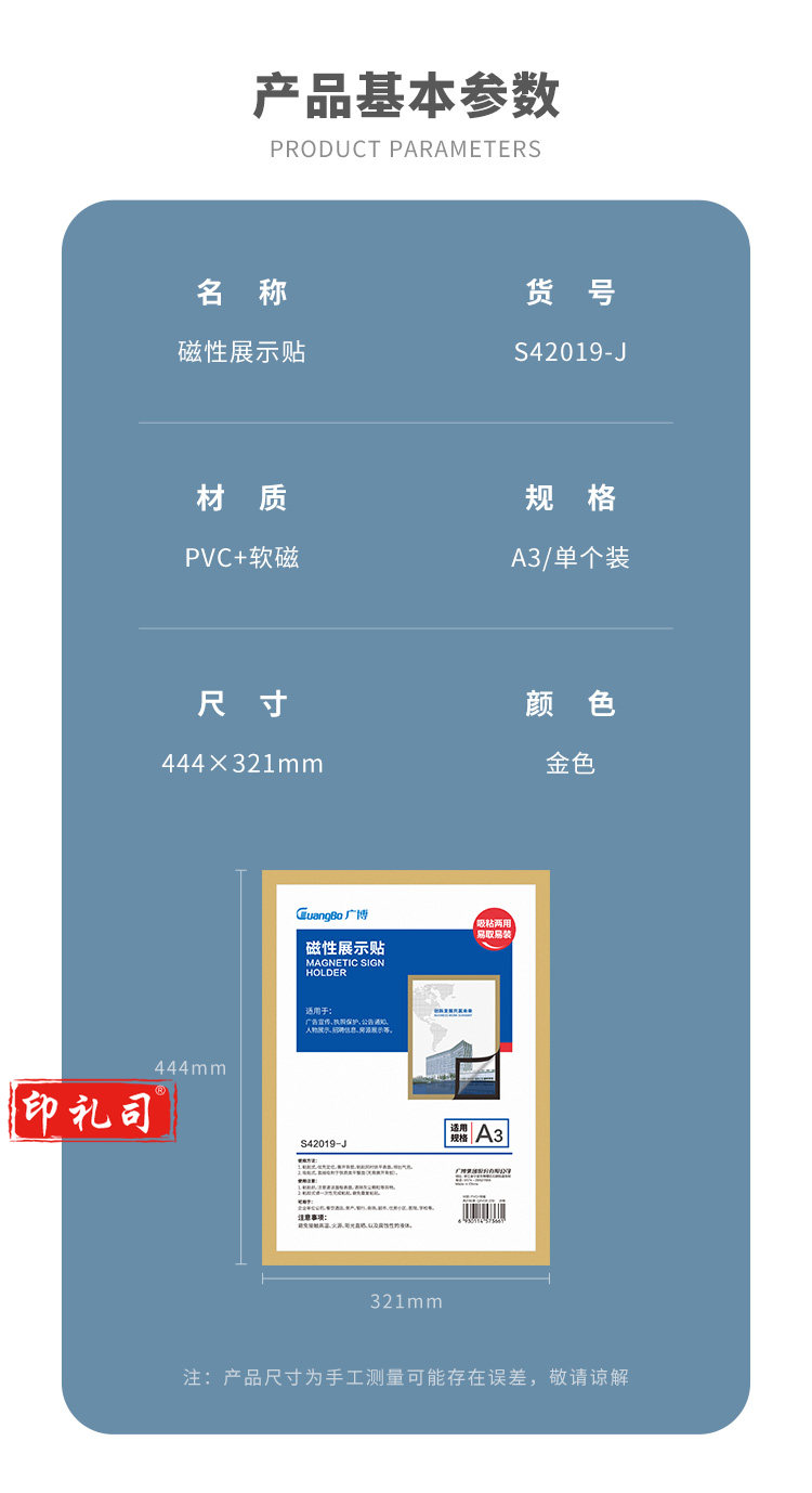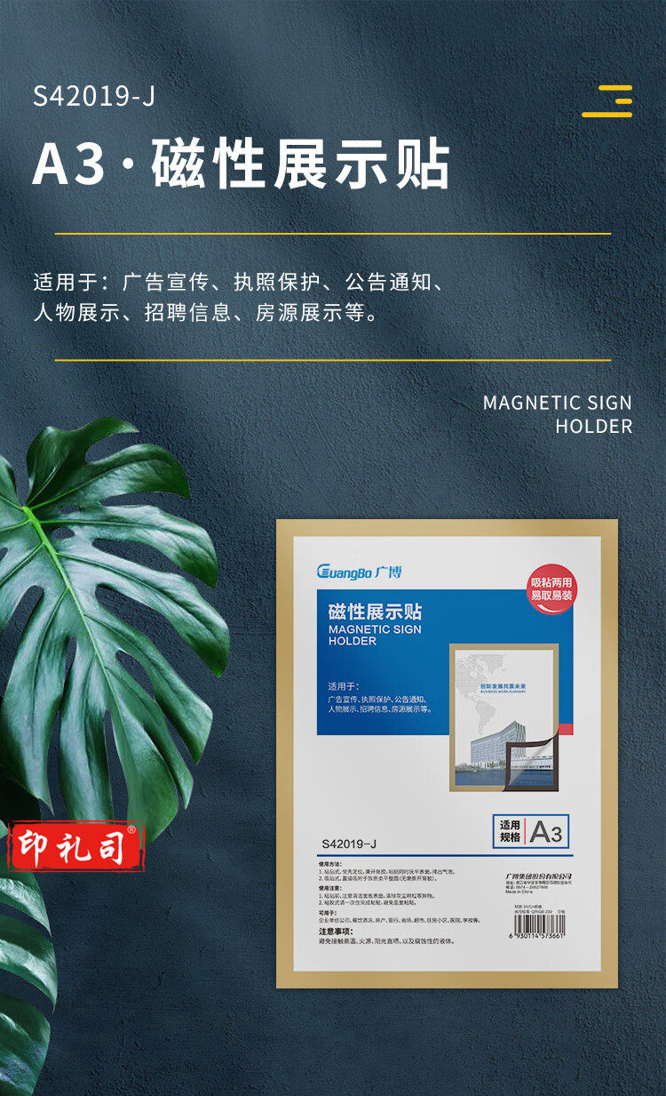 广博(GuangBo)A3磁性展示贴 营业执照框透明文件保护套卡套 磁力贴公告栏通知贴纸 办公用品金色1张 S42019