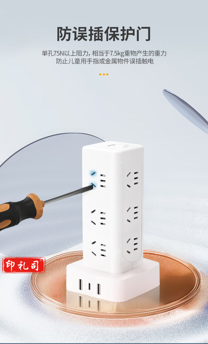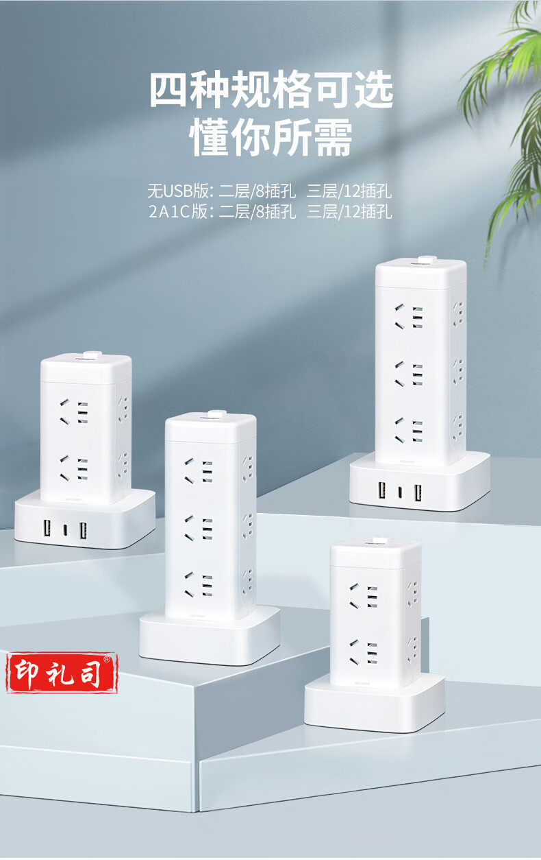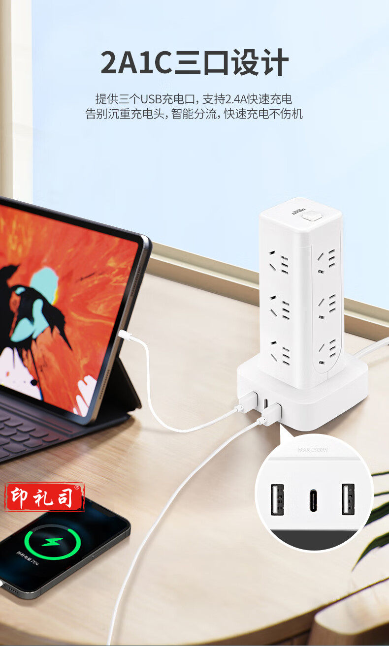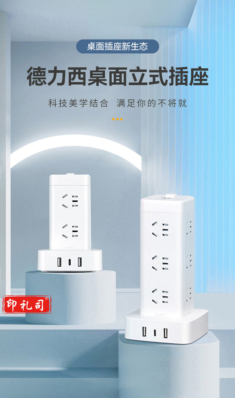 德力西(DELIXI)立式插座/插排/排插/插线板/插板/接线板/拖线板 12位五孔USB+TYPE-C总控3米过载保护
