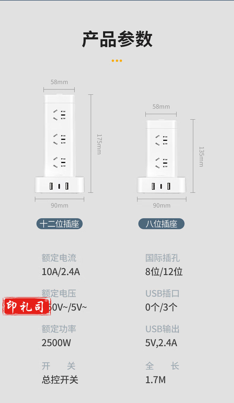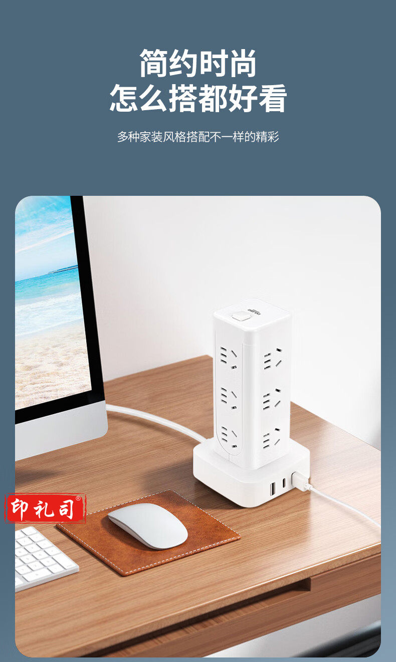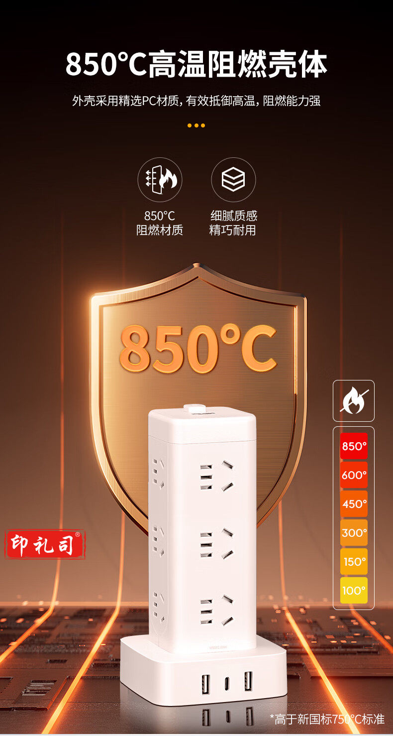 德力西(DELIXI)立式插座/插排/排插/插线板/插板/接线板/拖线板 12位五孔USB+TYPE-C总控3米过载保护