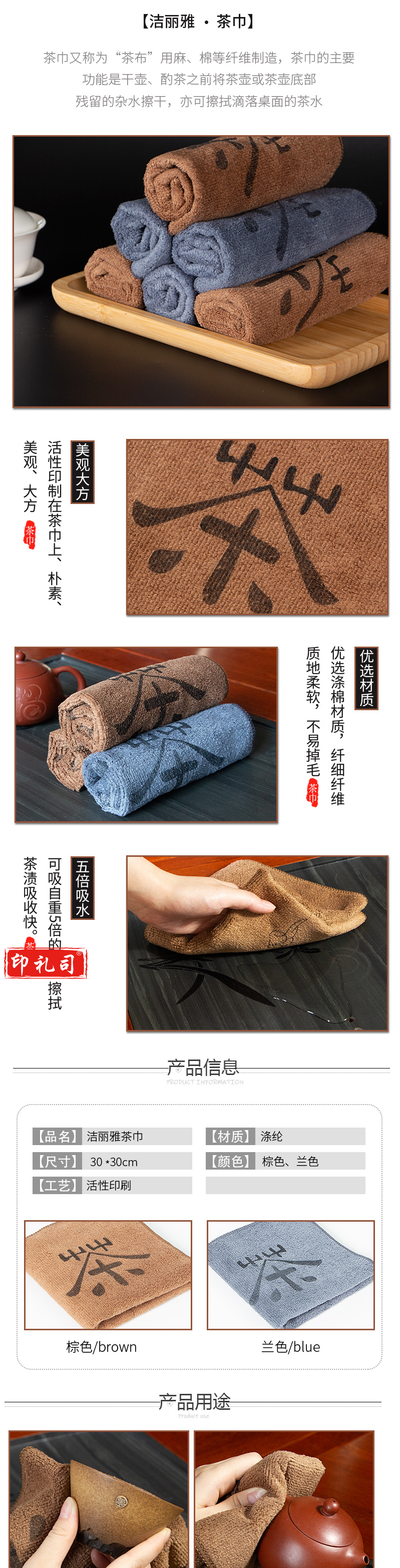 洁丽雅 30X30CM 茶巾 5条装 茶几茶桌抹布素雅茶巾5条装(棕3蓝2)(32g/条)