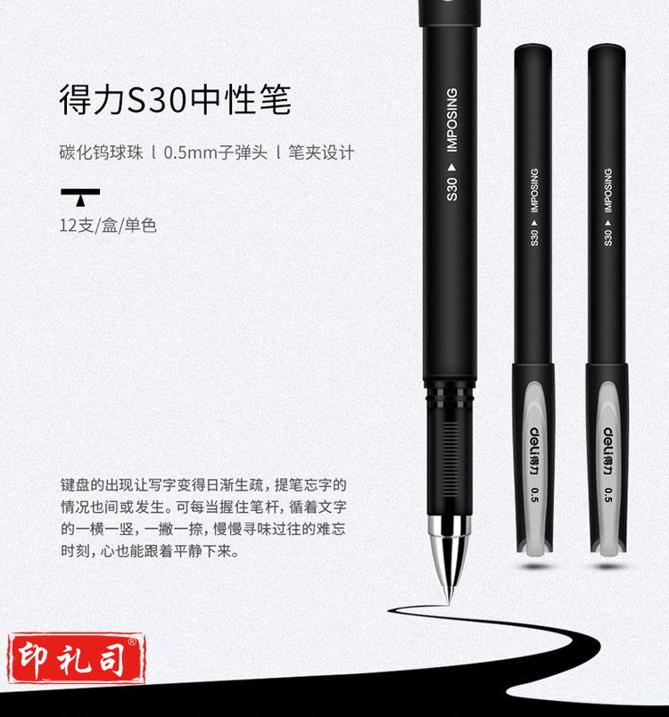 得力中性笔 S30 0.5mm黑色(12支起订)