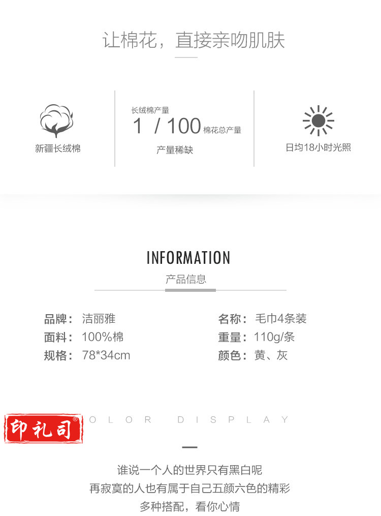 洁丽雅 8108 78*34 纯棉强吸水舒适毛巾 (单条装)