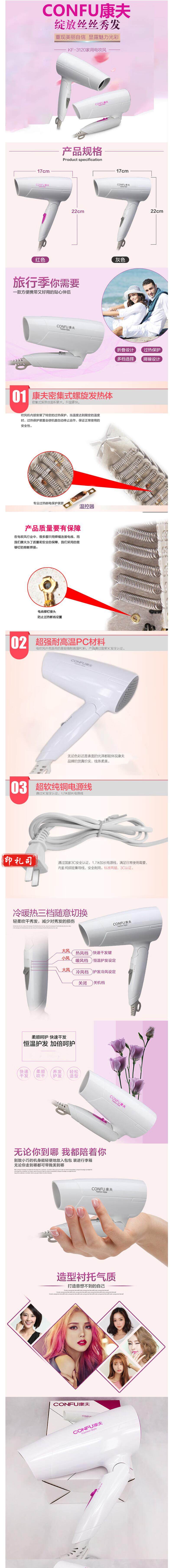 康夫 电吹风 KF-3120 功率1200W 旅游家用宿舍 可折叠便携式冷暖风 吹风筒