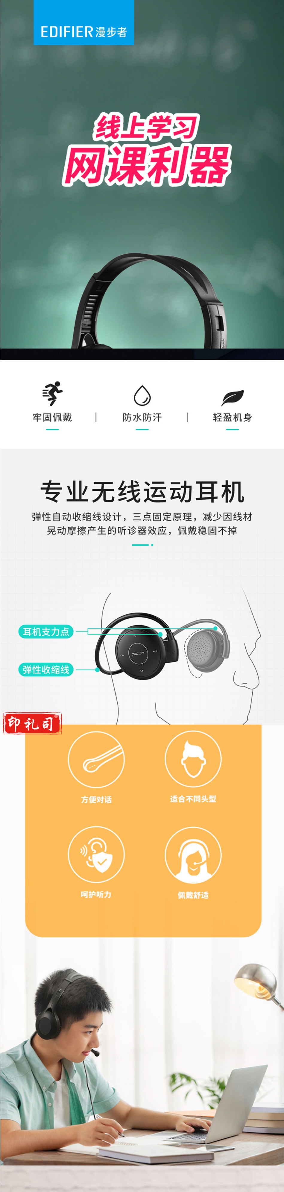 漫步者 (EDIFIER) USB K800 学生网课耳麦 头戴式电脑耳机 在线教育听力对话耳麦 黑色