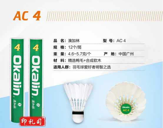 澳加林(Okalin)威健羽毛球 稳定耐打 球感扎实 性价比高 比赛训练用球 AC4 2速 1筒