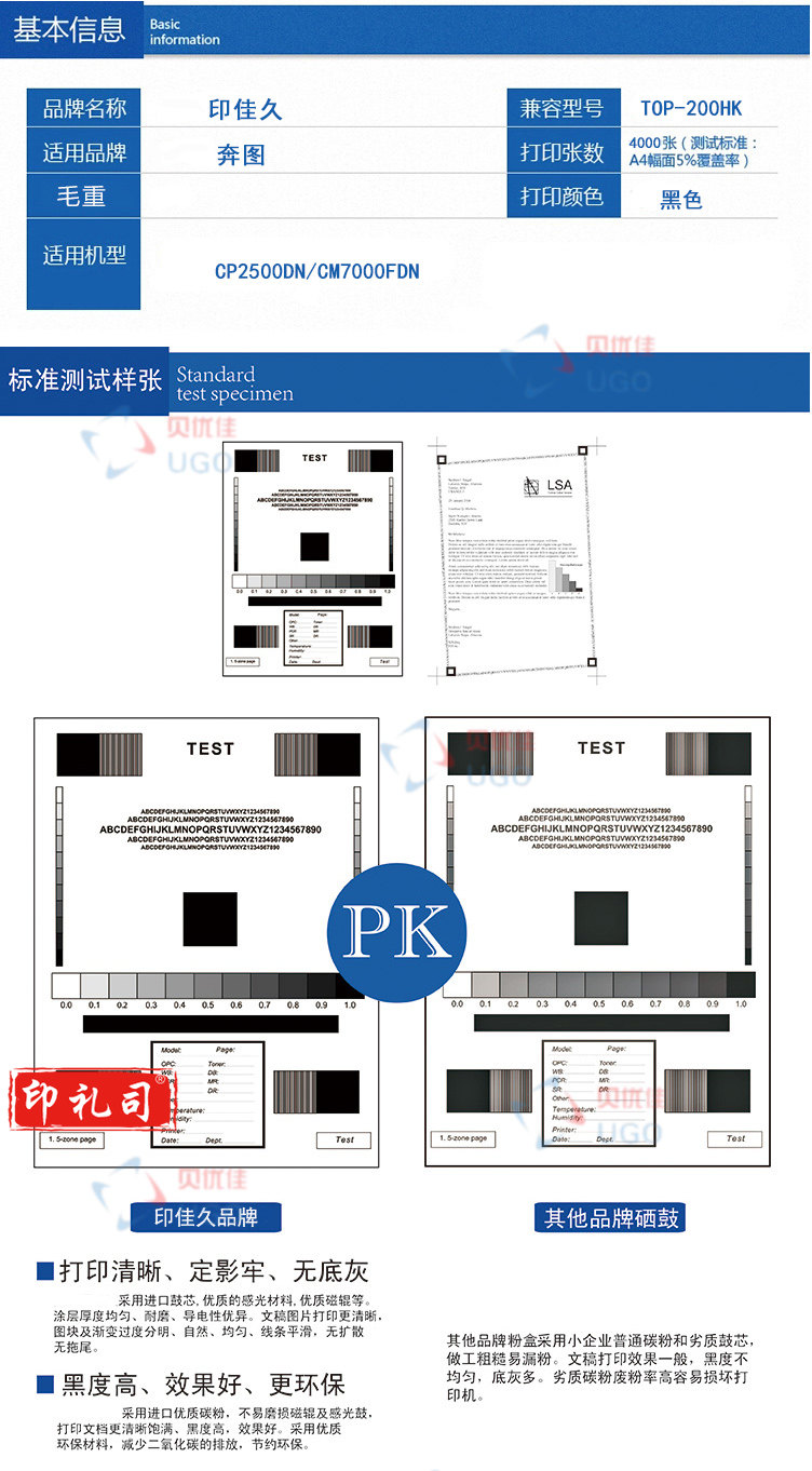 印佳久 TOP-200HK 黑色粉盒 适用奔图CP2500DN/CM7000FDN