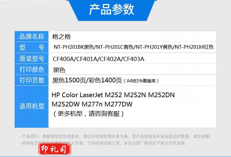 格之格 (G&G) 硒鼓 NT-PH201BK 适用 惠普CF400A 硒 鼓 M277n M277DW M252 DN DW