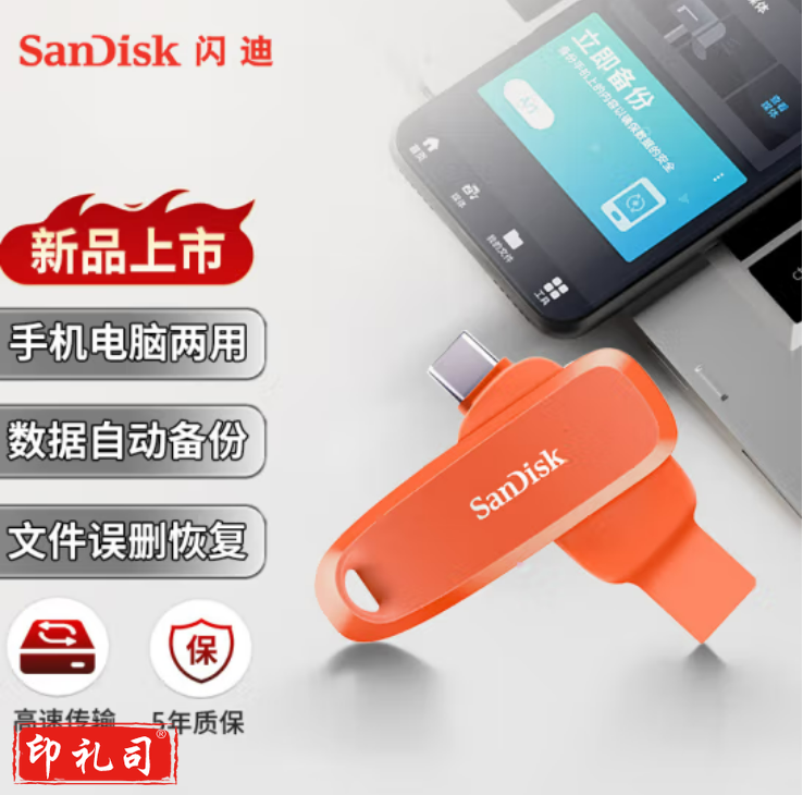 闪迪(SanDisk)32GB Type-C USB3.2 手机U盘DDC6橙色 自动备份 手机电脑存储盘 双接口大容量优盘