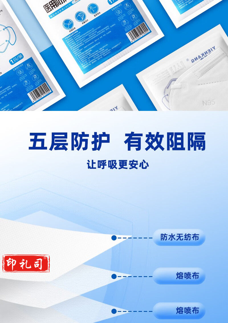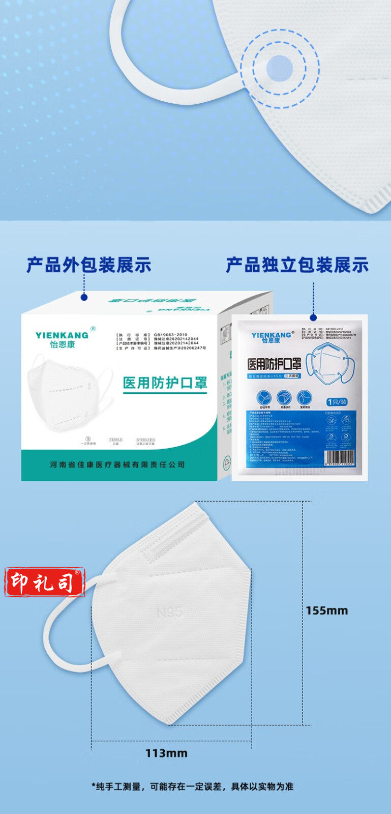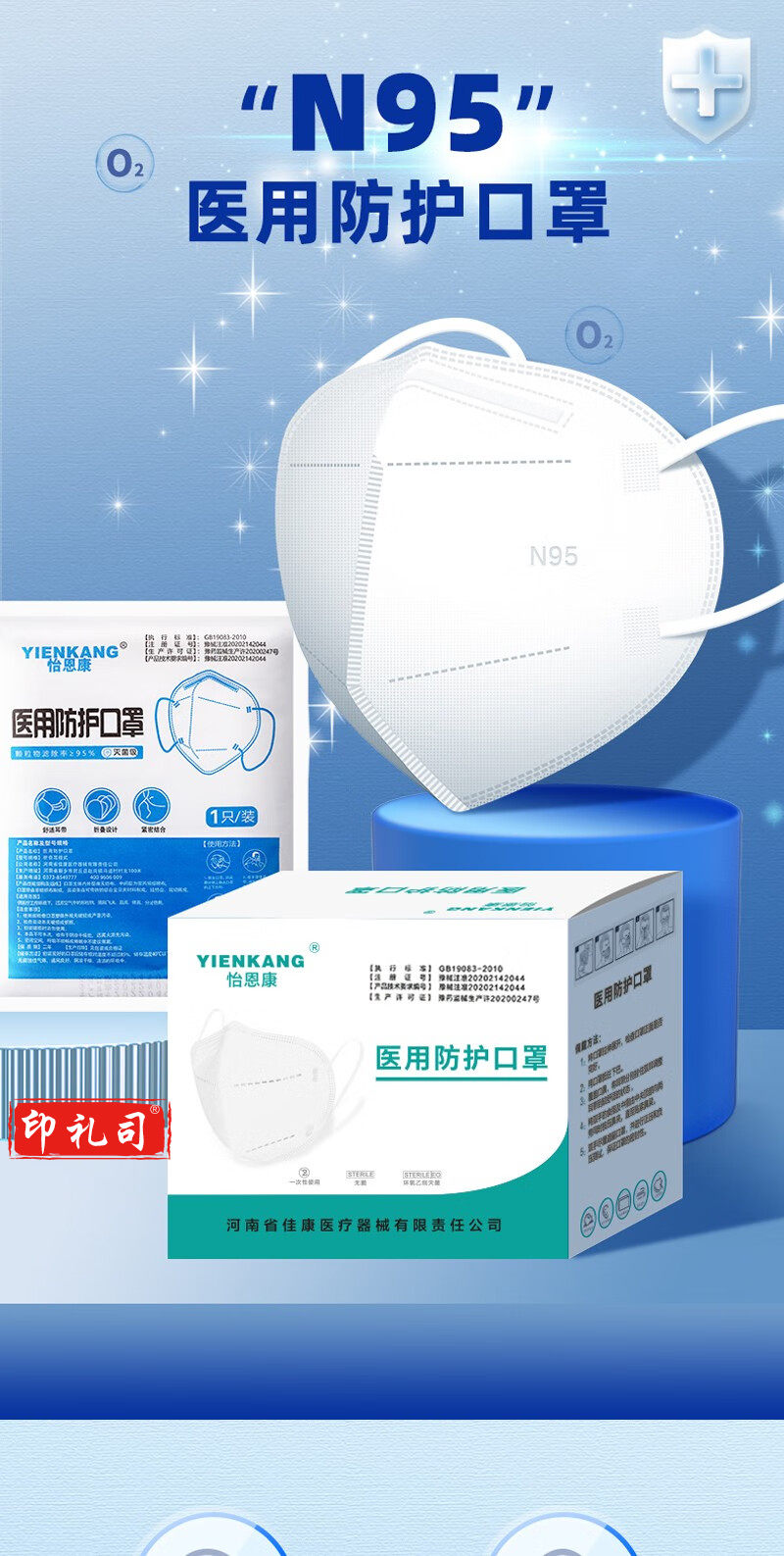 怡恩康 N95型口罩 五层过滤耳挂式一次性防护防尘3d立体口罩灭菌级独立包装 白色 独立包装