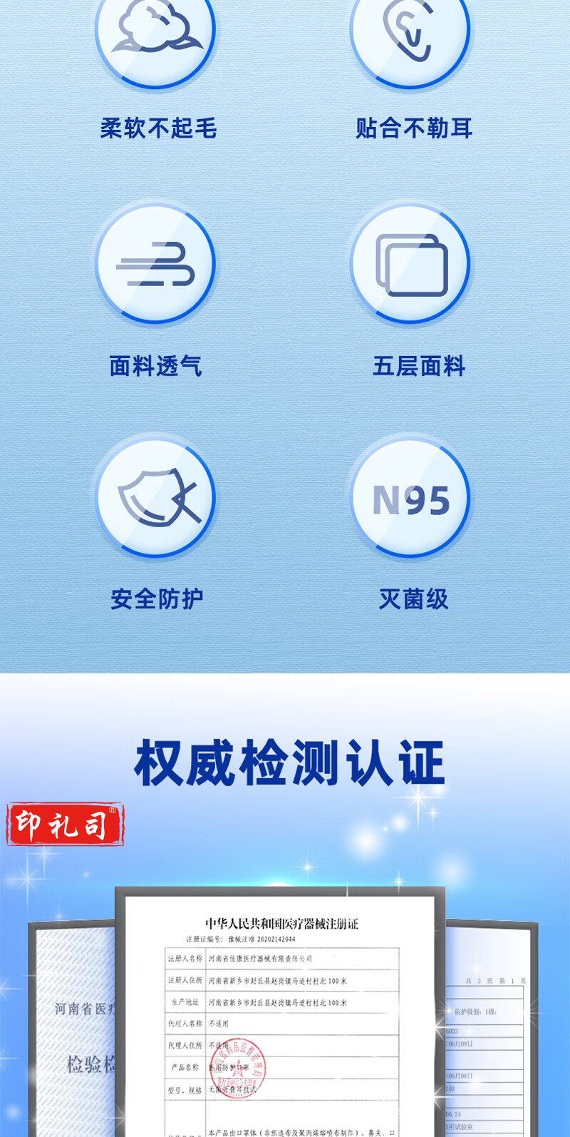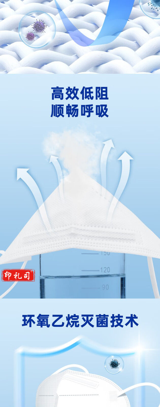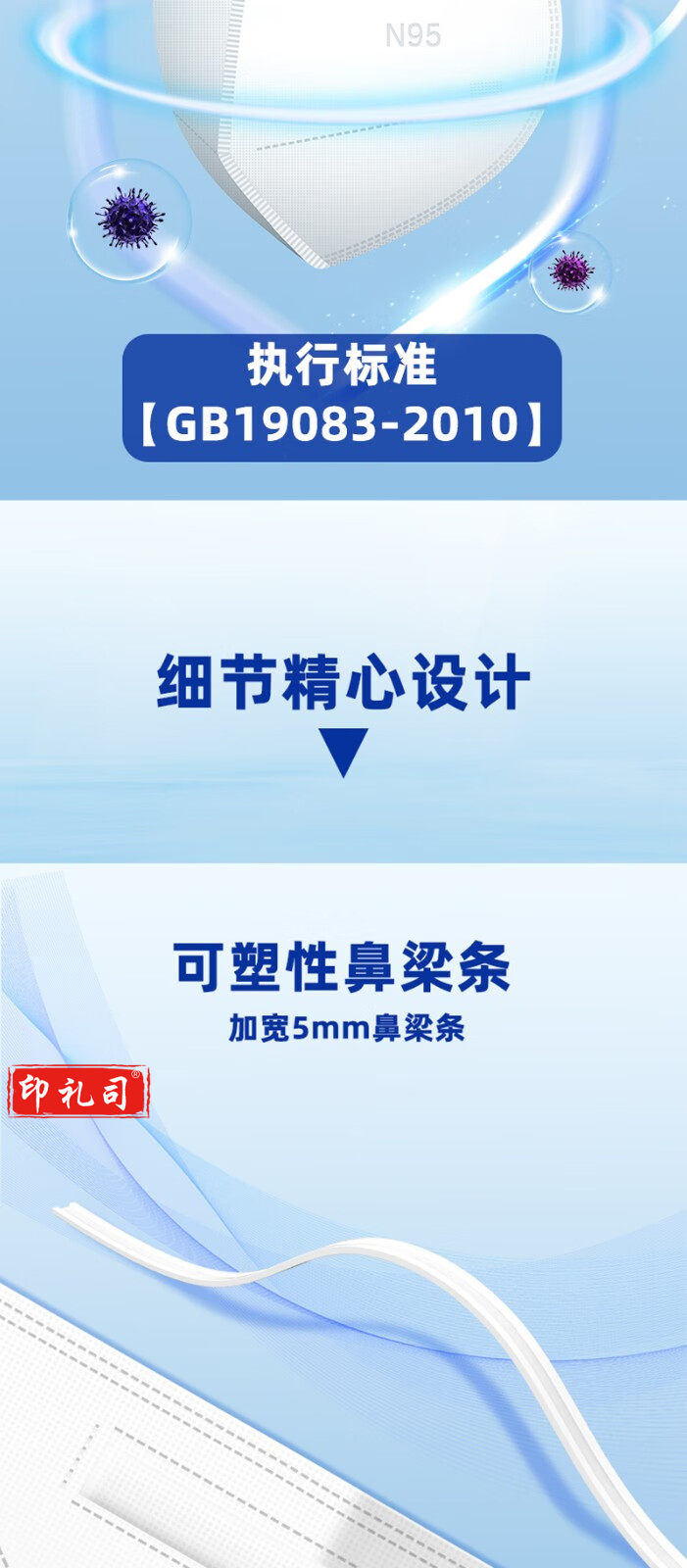 怡恩康 N95型口罩 五层过滤耳挂式一次性防护防尘3d立体口罩灭菌级独立包装 白色 独立包装