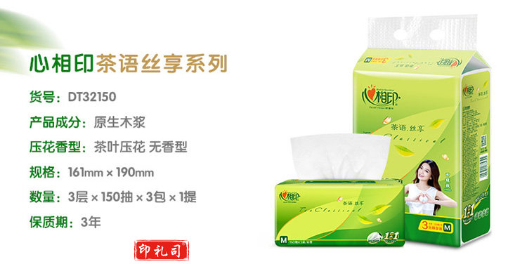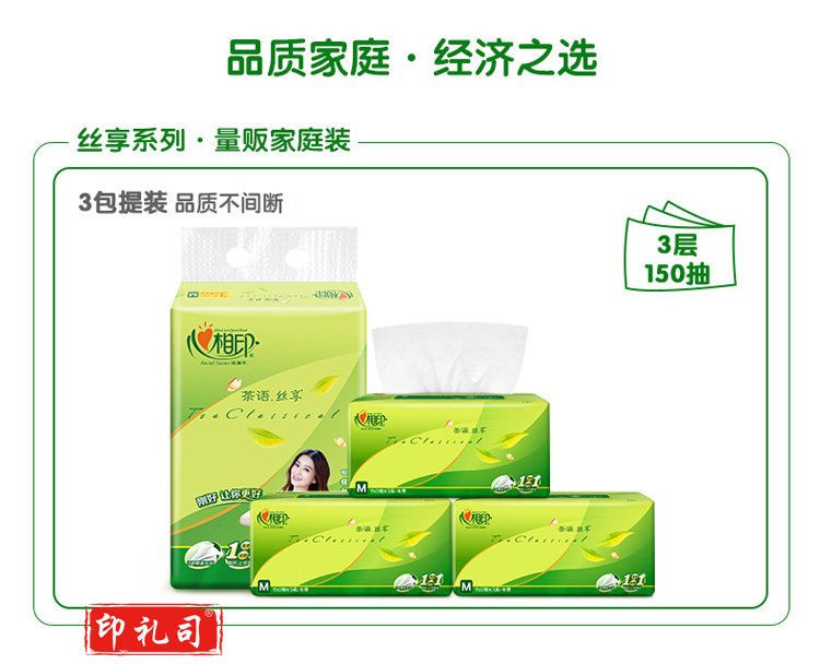 心相印DT32150茶语丝享系列150抽三层塑装纸面巾抽纸 纸抽 单包装