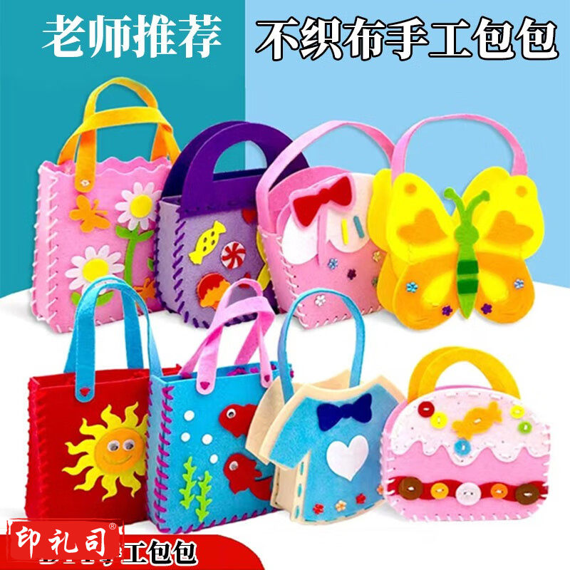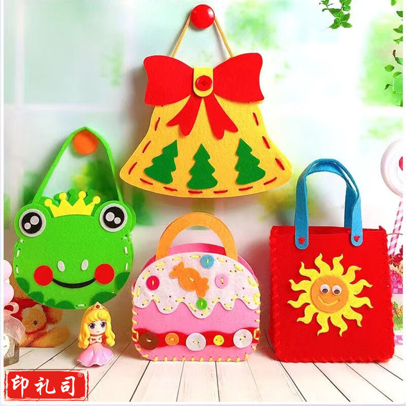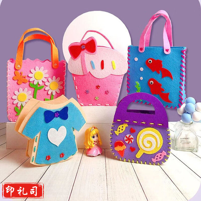 坤随 儿童不织布DIY包包手工制作材料包卡通可爱无纺布手提包生日礼物 粉色小花、冰淇淋、独角兽3个装
