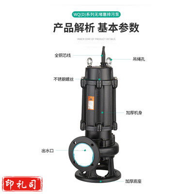 上海人民 WQ7-15-1.1KW 2寸 220V 无堵塞污水泵