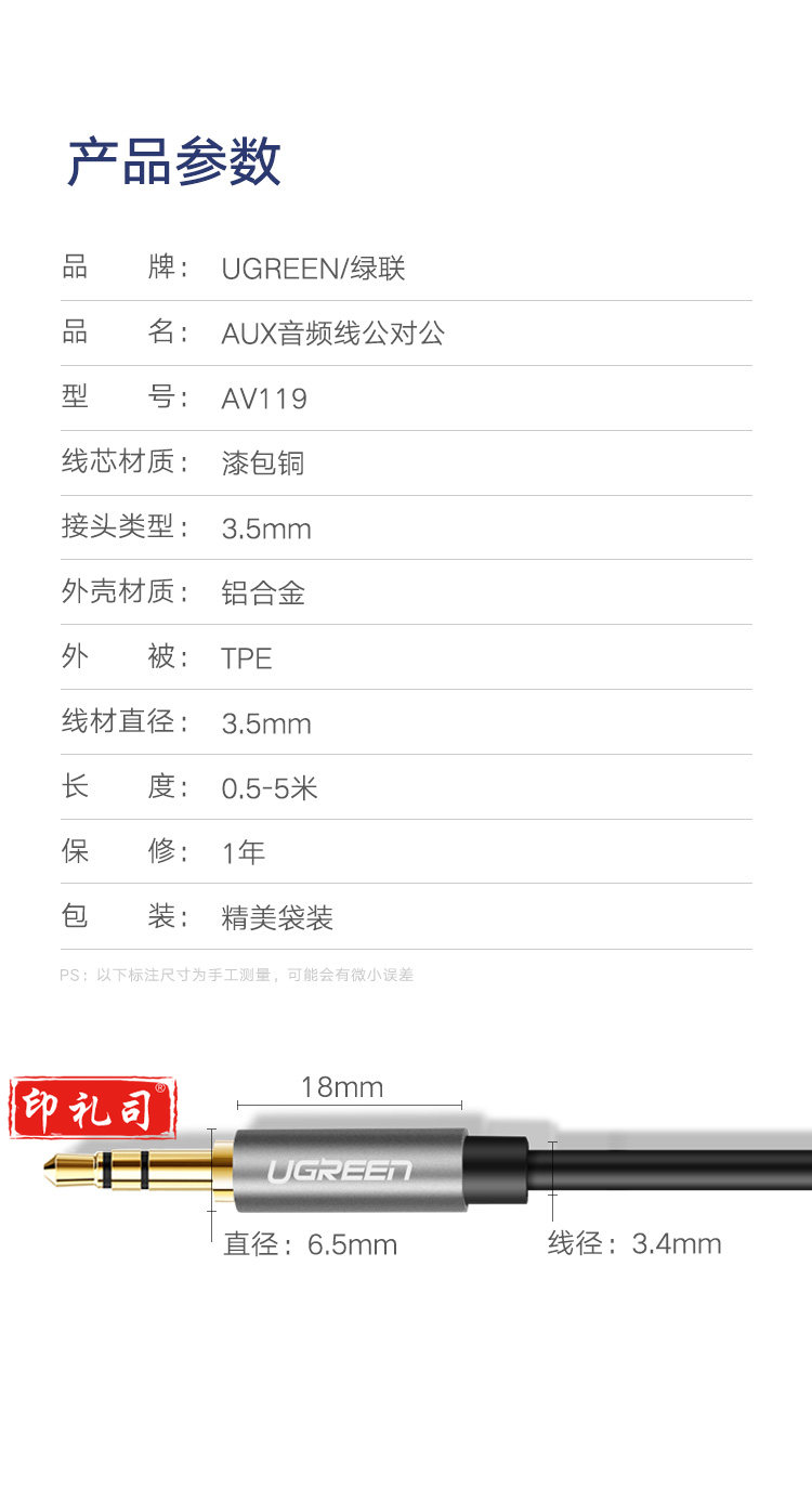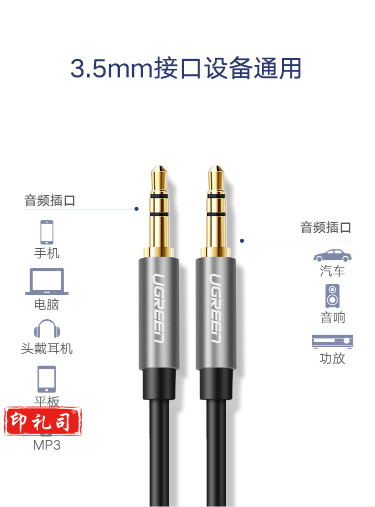 绿联10736 车用AUX音频线 3.5mm公对公车载连接线 3米黑
