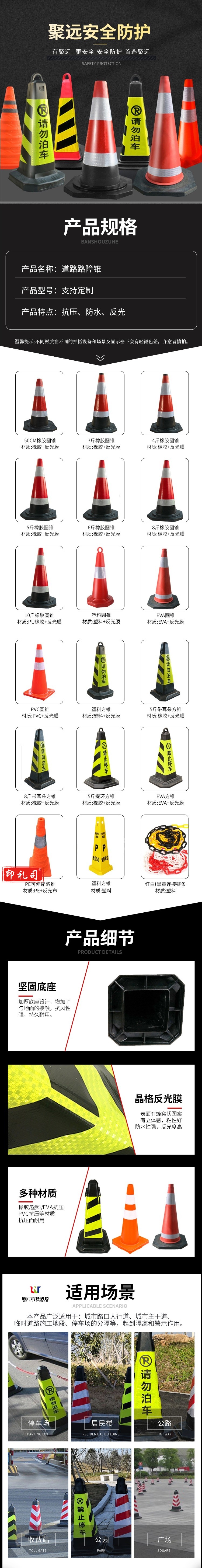 雪糕桶警示柱 停车路障桩 橡胶路堆交通路锥三角椎型桶 黄黑禁止停车