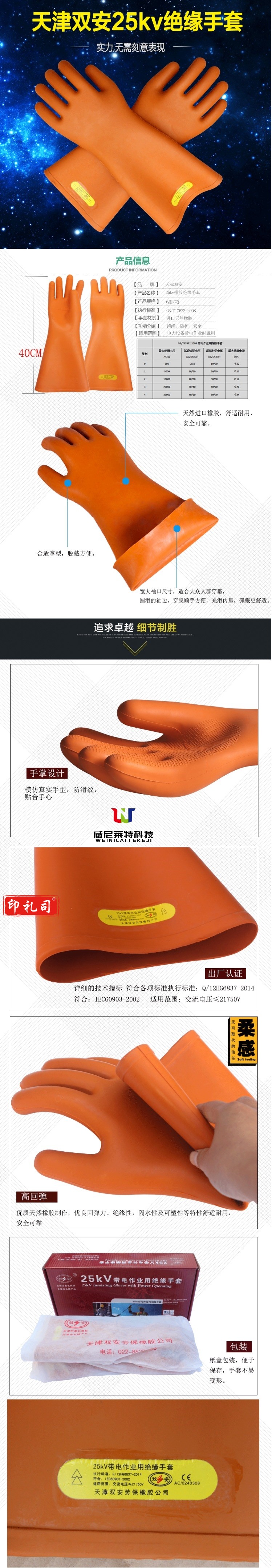 双安 25KV带电作业用绝缘手套|电工|防电|高压|安全|橡胶| 25KV绝缘手套