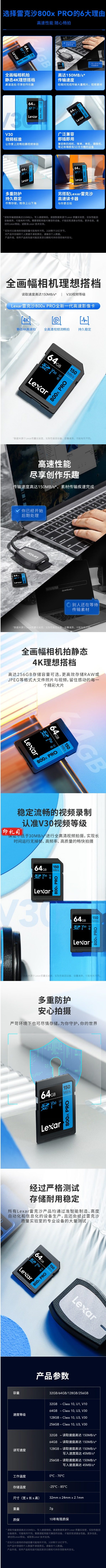 雷克沙(Lexar)64GB SD存储卡 U3 V60
