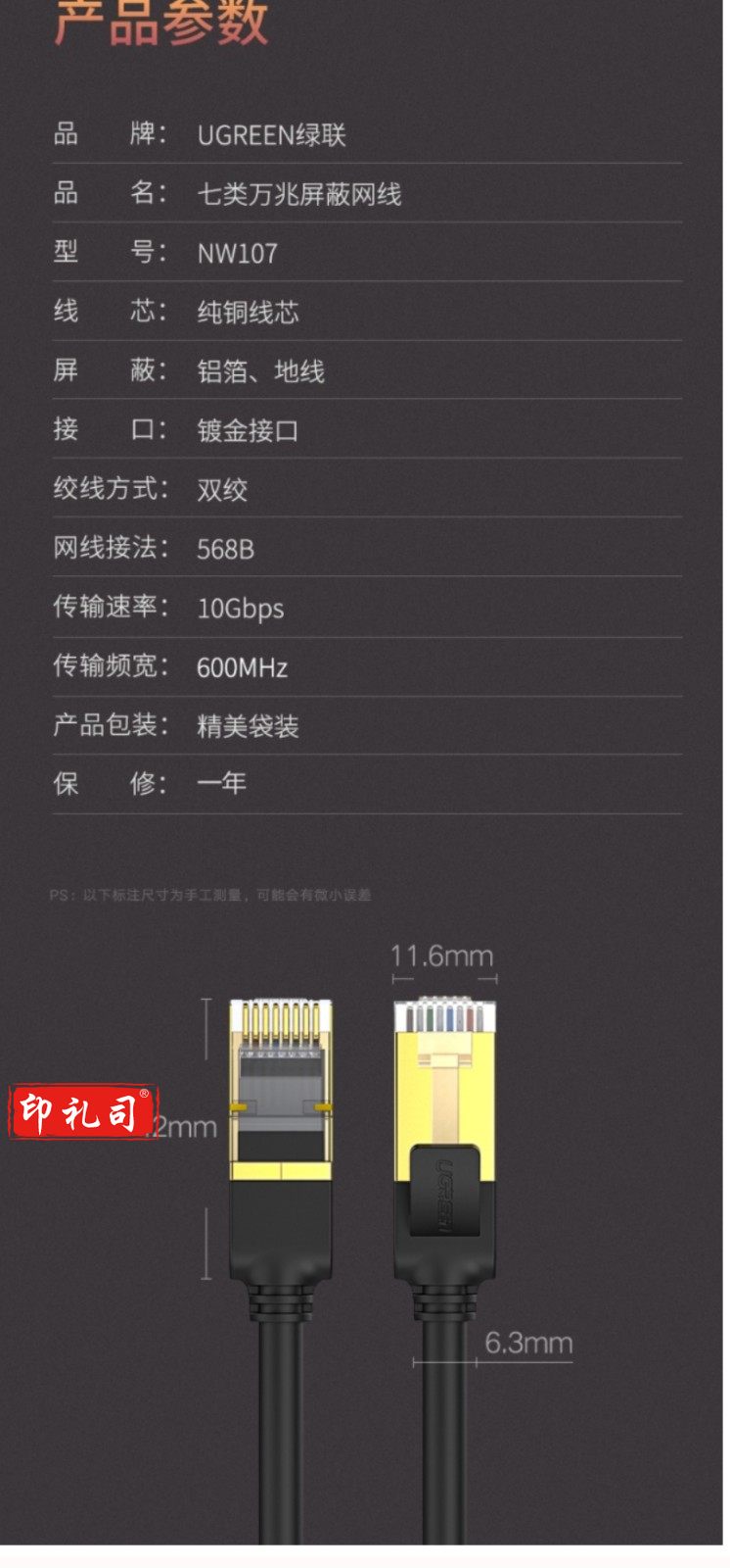 绿联(UGREEN)7类纯铜网线 Cat7七类屏蔽8芯双绞线 工程级万兆网络连接线 电脑宽带家用成品跳线8米