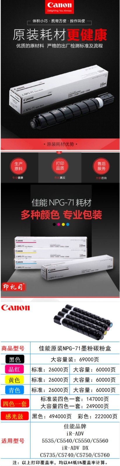佳能 NPG-71原装 粉盒 墨粉 适用于C5535 5540 5550 5560 碳粉 NPG-71高容四色一套
