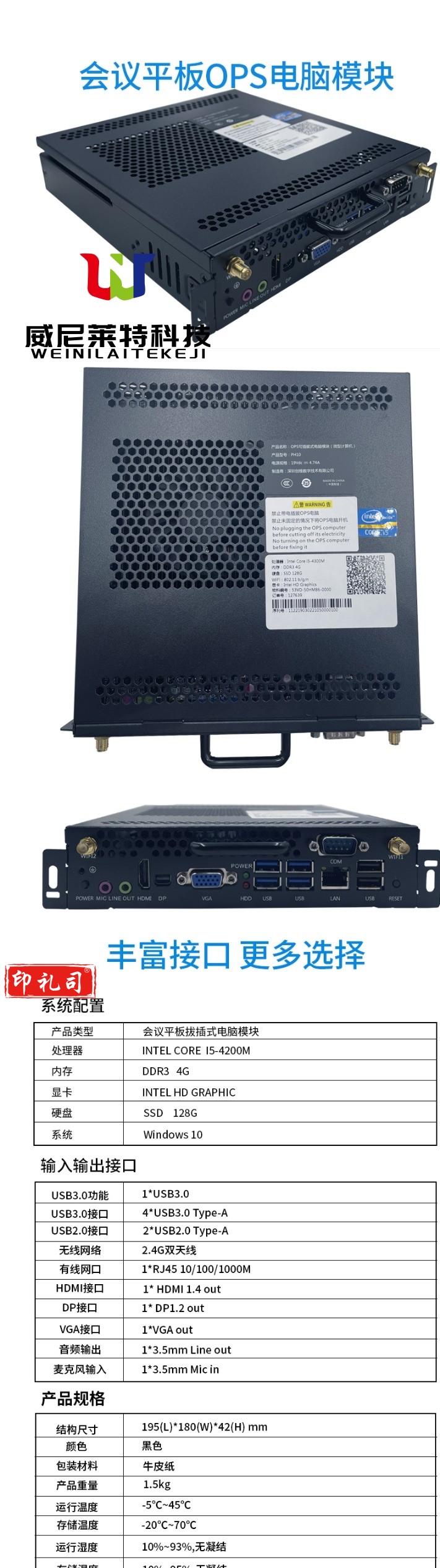 创维会议平板专用OPS模块 电子白板大屏插拔式微型PC主机 i5 4G+128G