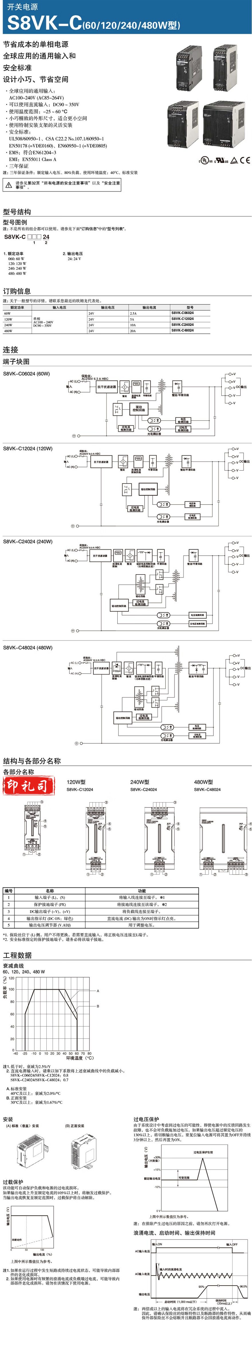 继电器 S8VK2001G,S8VK-C12024S8VK-C开关电源 ,C