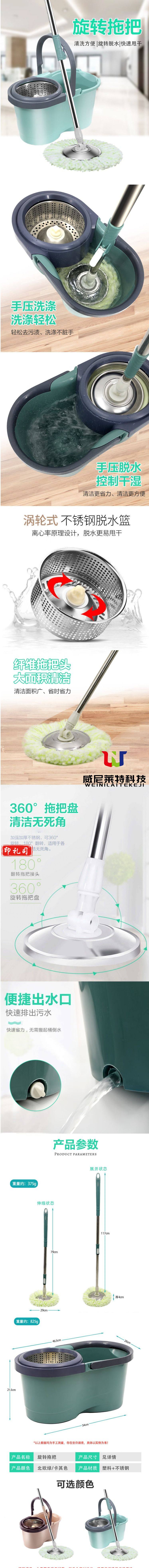 墩布套装免手洗旋转拖把 商用不锈钢旋转甩水墩布带桶懒人拖把套装