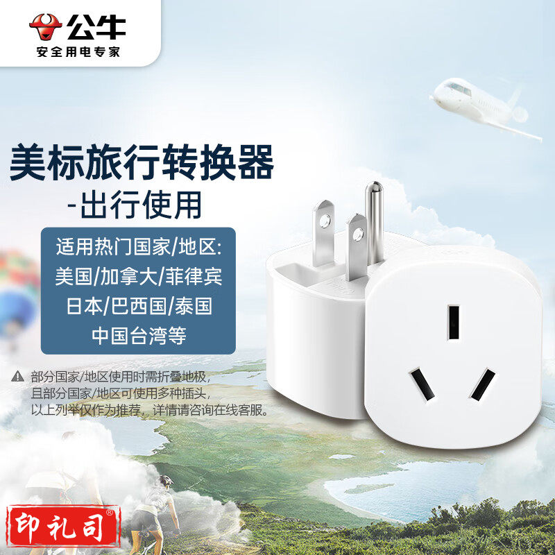 公牛(BULL)美标旅行电源转换器插座 适合美标地区美国 加拿大 日本等国家及中国台湾地区GN-L07A