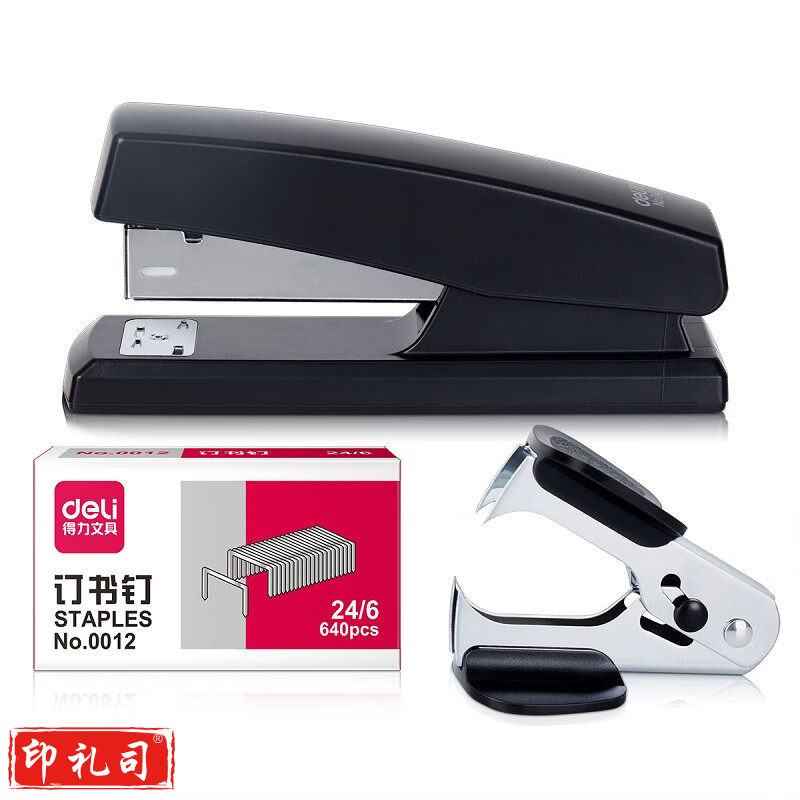 得力(deli) 0354 12#办公订书机3件套(订书器+订书钉+起钉器) 黑色