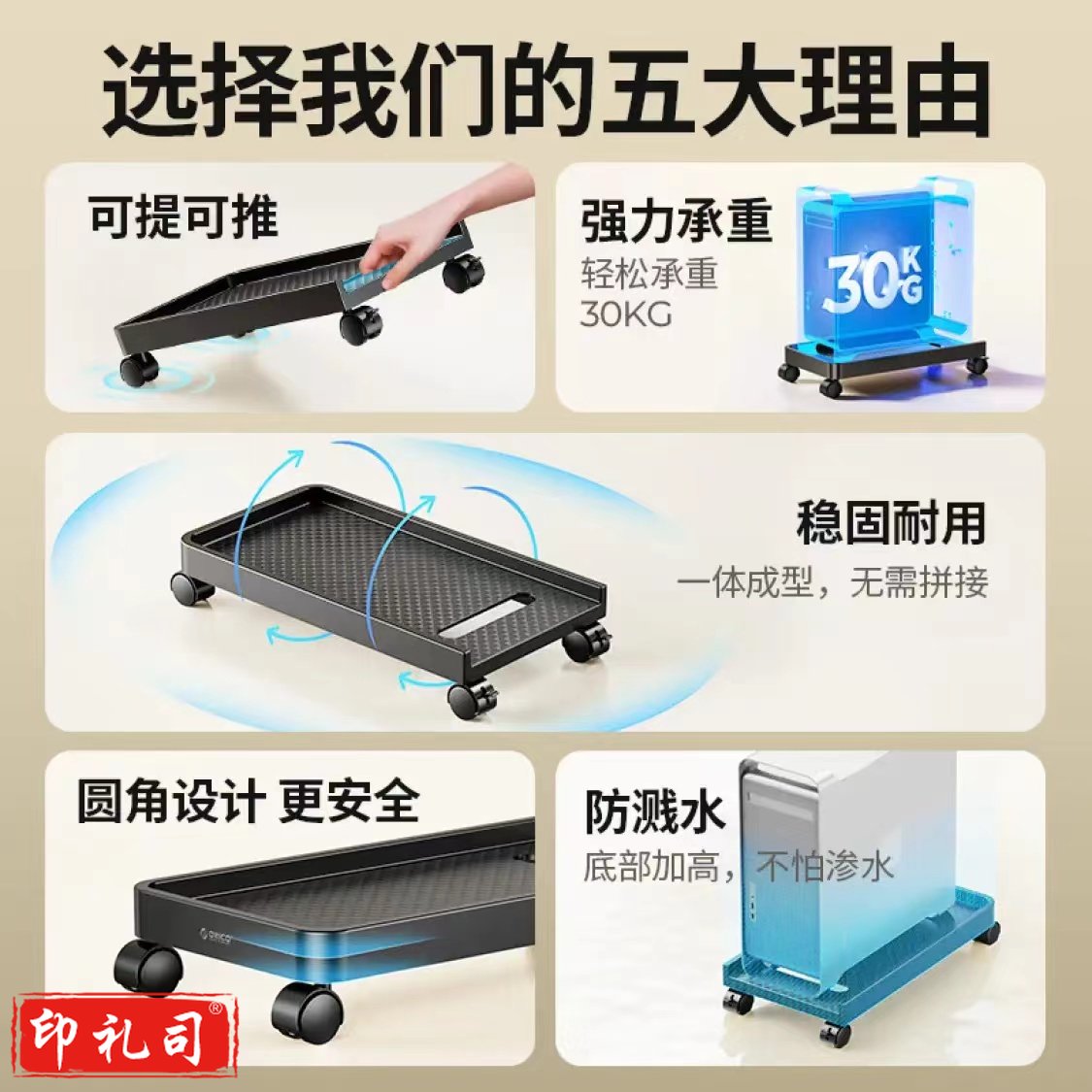 电脑主机支架 电脑主机托架支架可移动台式主机箱架底座托盘机箱架万向滑轮带刹车锁轮三边挡板