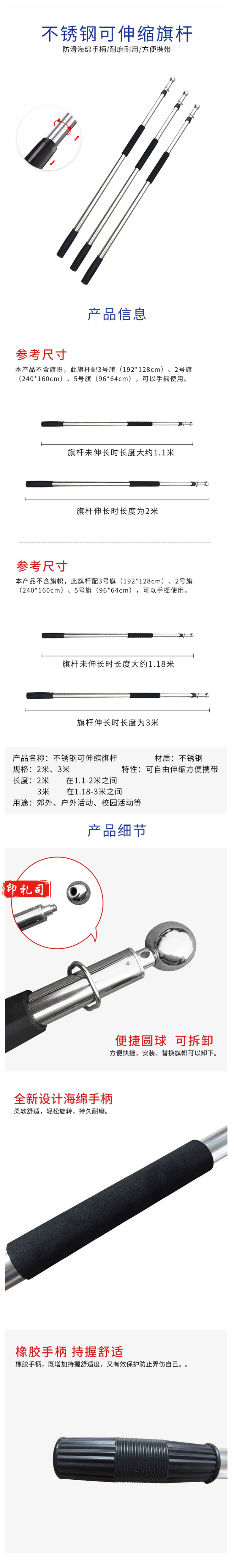 国为(COUVEZI) 手持党旗旗杆 加粗加厚 国旗伸缩旗杆红旗杆收缩党旗杆国旗杆户外 3米不锈钢伸缩旗杆