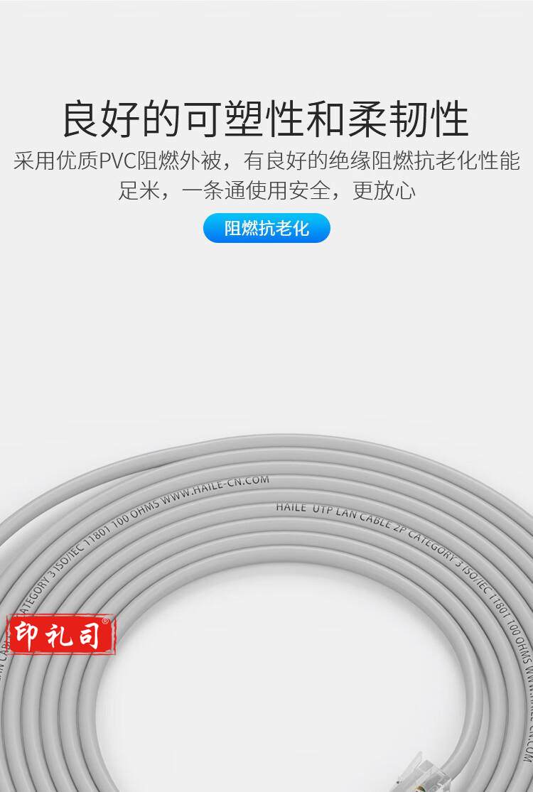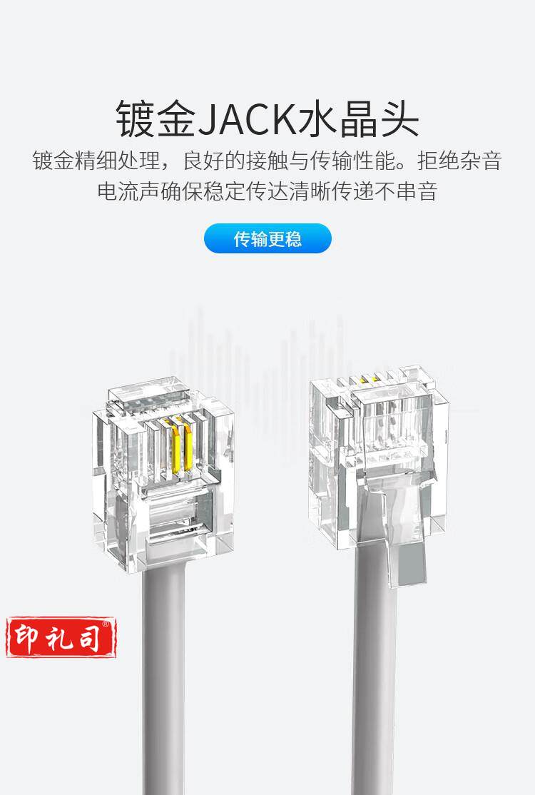 海乐(Haile)电话线2芯 HT-100-3M 纯铜 成品跳线 带水晶头 灰色 3米