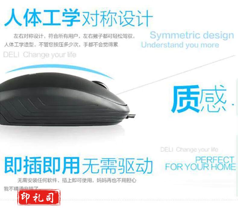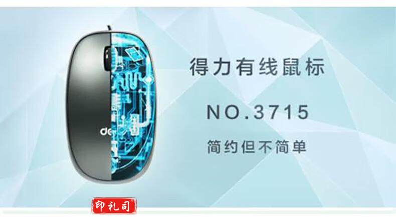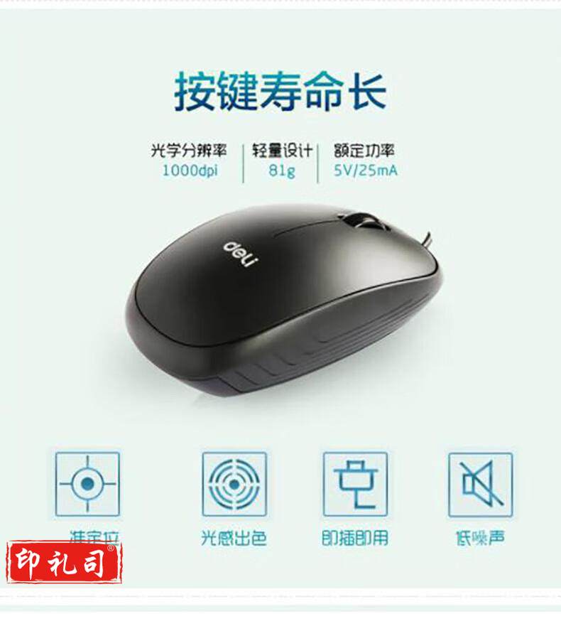 得力(deli) USB有线鼠标 光感灵敏办公鼠标 即插即用 经典雅黑 1只 3715