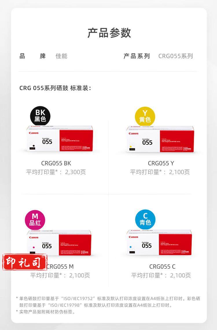佳能(Canon)原装CRG-055红色硒鼓适用MF746Cx/742Cdw/LBP664Cx/663Cdw/663Cdn打印机粉盒(2100页)