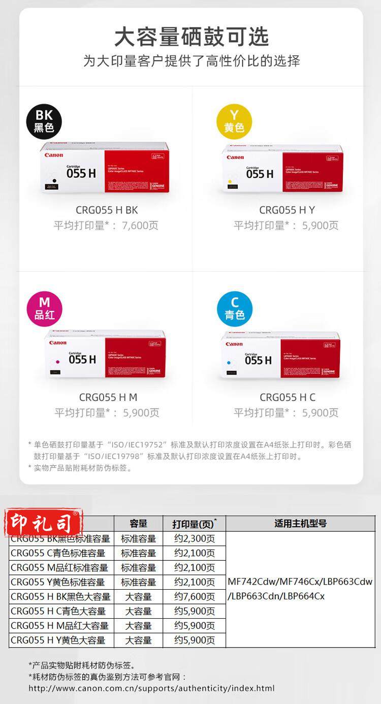 佳能(Canon)原装CRG-055青色硒鼓适用MF746Cx/742Cdw/LBP664Cx/663Cdw/663Cdn打印机粉盒(2100页)