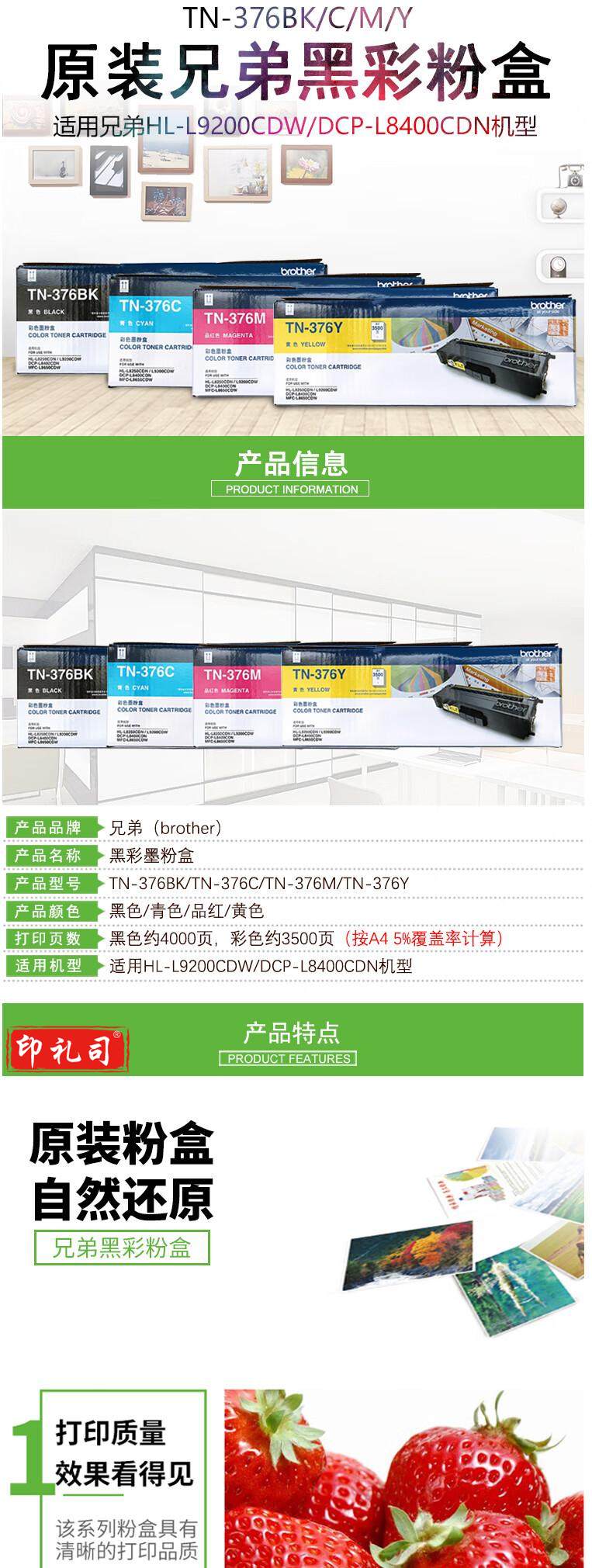 兄弟(brother)TN-376BK黑色粉盒HL-L9200CDW DCP-L8400CDN