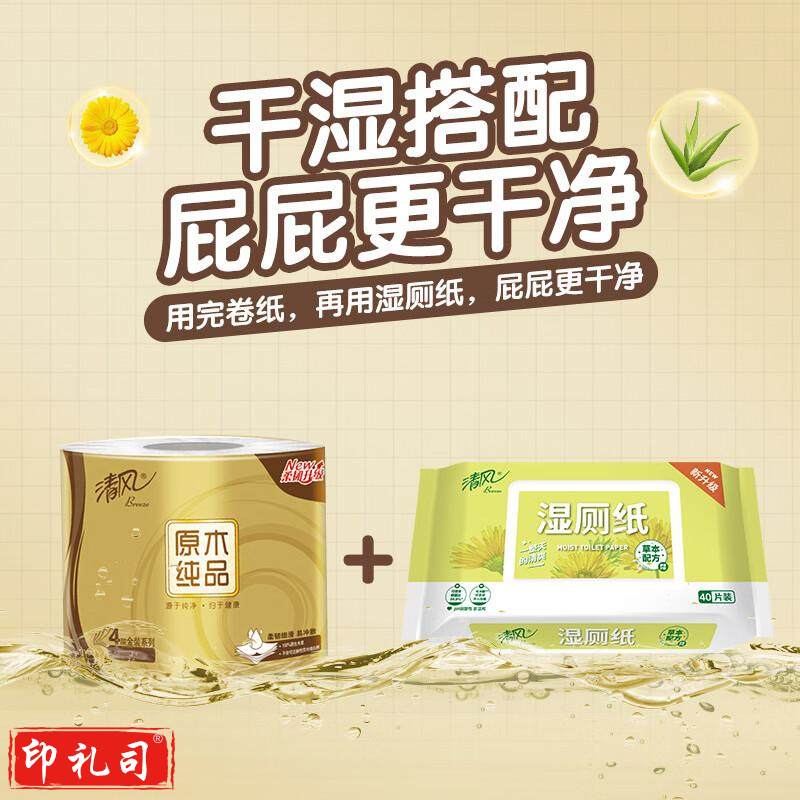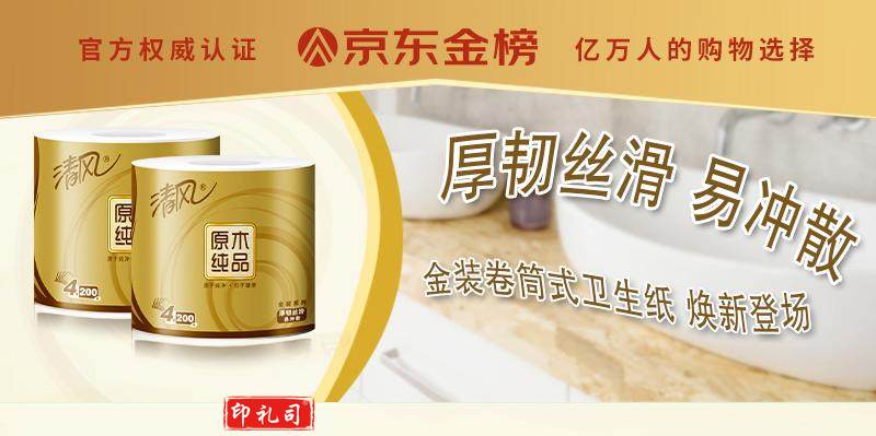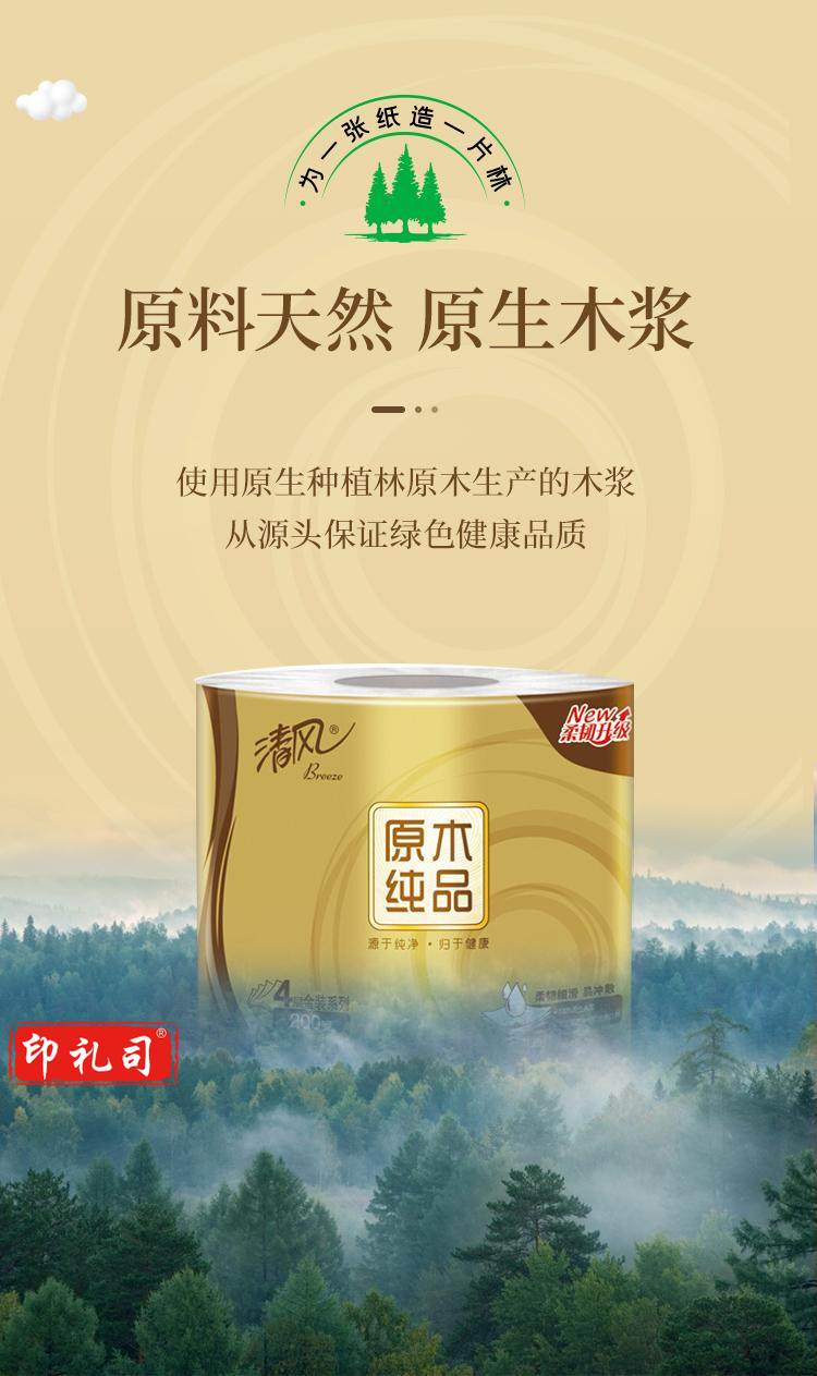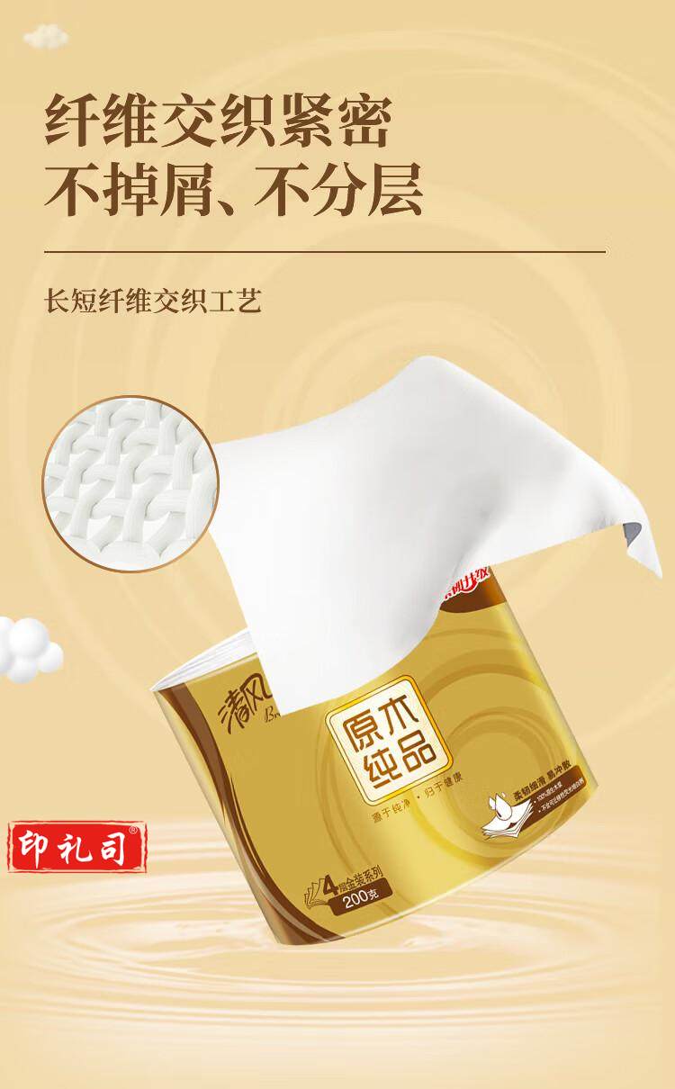 清风有芯卷纸 原木金装4层加厚200克*27卷 卫生纸卷筒纸纸巾卷纸整箱