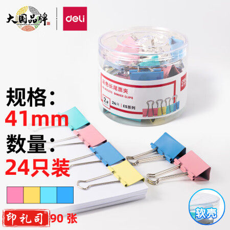 得力(deli)长尾夹凤尾夹(41mm/24只/筒)文具办公资料铁夹黑色金属燕尾夹彩色大号文件夹小号票据试卷夹鱼尾夹不锈钢 8552ES彩色大号(41mm/24只/筒 DBJ202403011354513