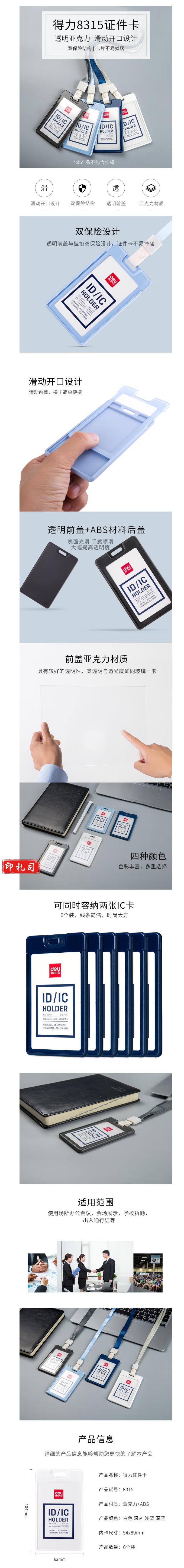 得力8315证件卡54*89mm*6个(白色胸卡) 202301093865