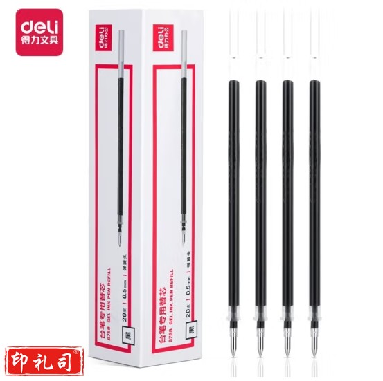 得力S758台笔专用笔芯0.5mm弹簧头(黑)(支)(20支/盒)(60支起售)